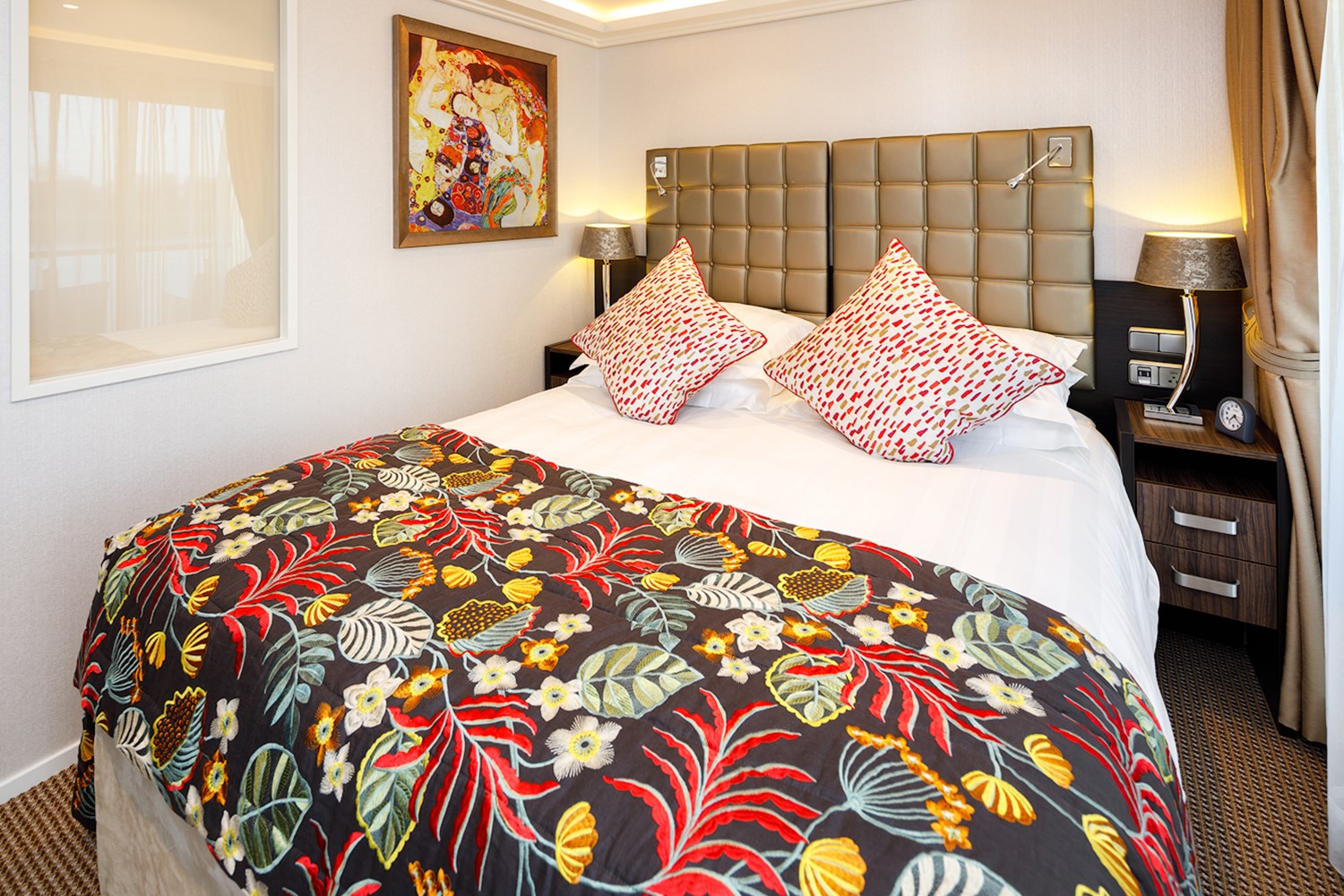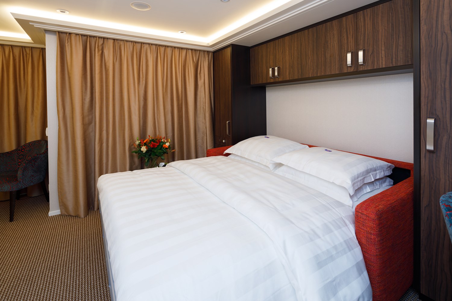This versatile space hosts a bar, dance floor, plenty of comfortable couches and big windows on three sides and is used for everything from the morning port talks, daytime reading and chatting to scenic cruising, afternoon tea and evening entertainment.