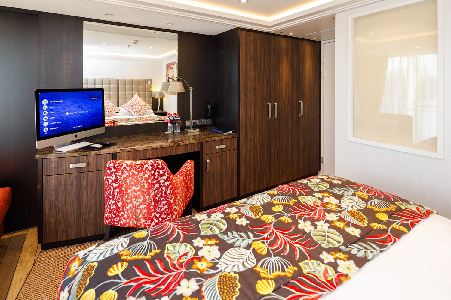 With AmaWaterways’ Co-Founder Kristin Karst serving as AmaKristina’s Godmother, you know you’ll have a distinctive experience aboard this phenomenal, award-winning river ship. Both a French and outside balcony in most staterooms allow you to enjoy the ever-changing scenery however you wish. In the marble bathroom, enjoy multi-jet showerheads, soothing bath and body products, cozy robes and hair dryers. Suites feature added enhancements, including a larger sitting area and an expansive bathroom complete with a bathtub and separate shower. AmaKristina also includes a massage and hair salon, gift shop, specialty coffee station, heated pool with swim-up bar, fitness center, sun-deck walking track and a fleet of onboard bikes. Her Main Restaurant is a taste of the outdoors, with vines and branches infused in the décor, and expert chefs preparing our signature exquisite cuisine with fresh, locally-sourced ingredients—both in the Main Restaurant and at The Chef’s Table.