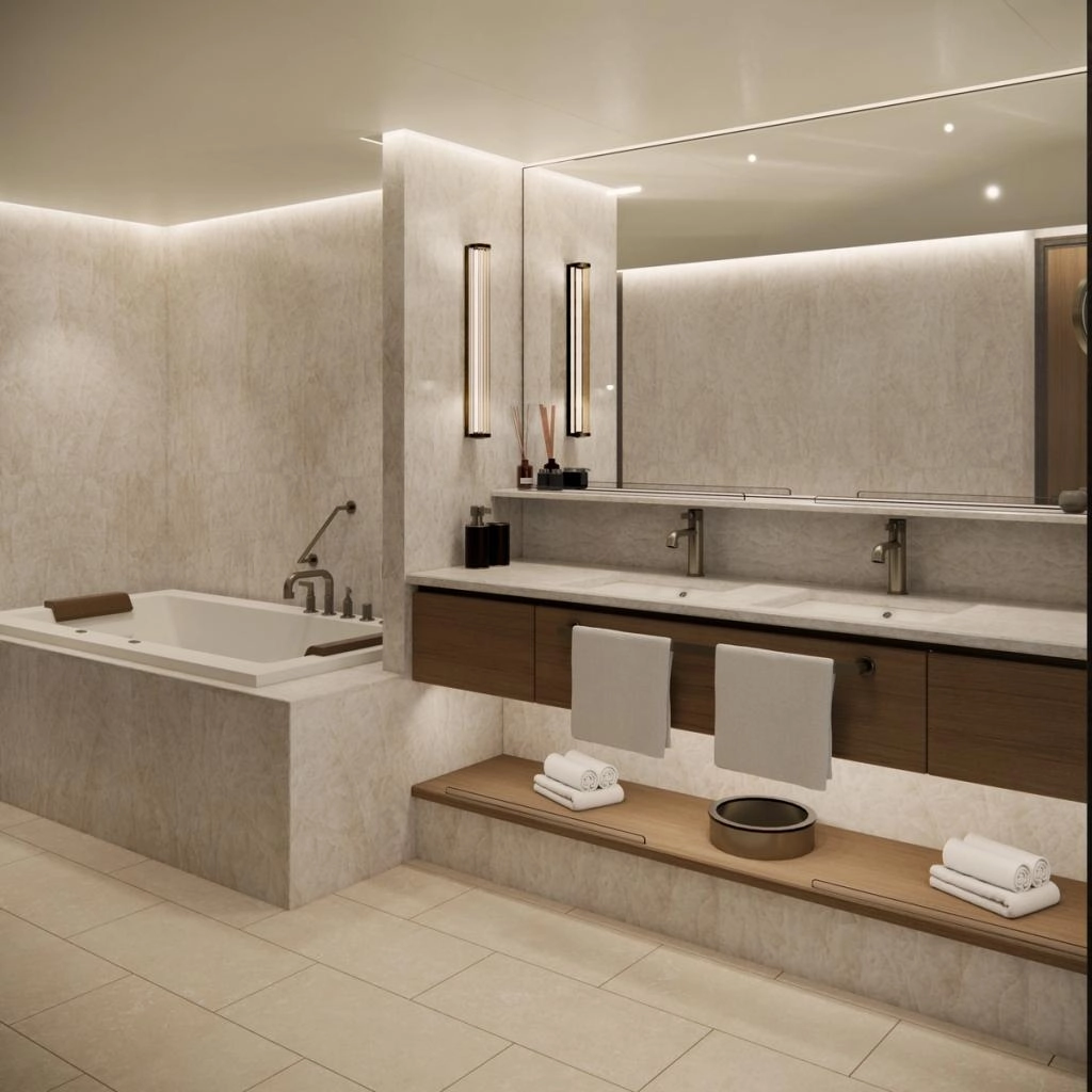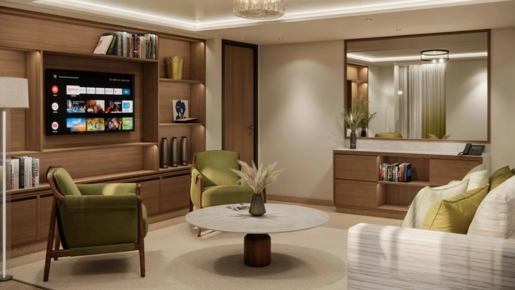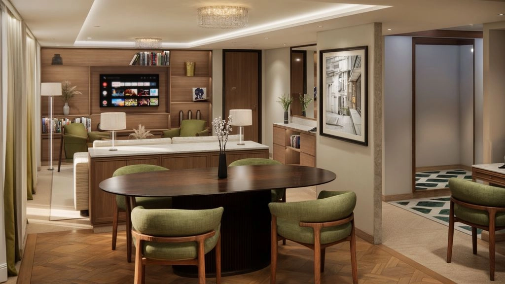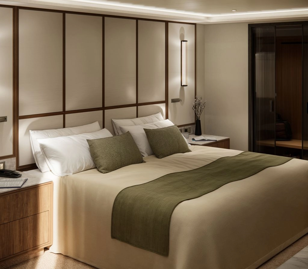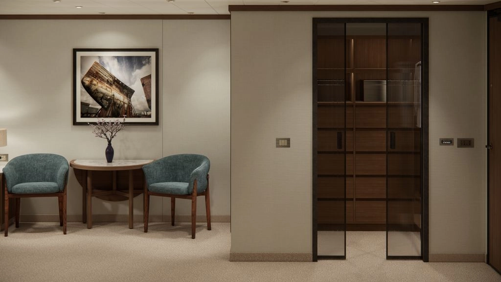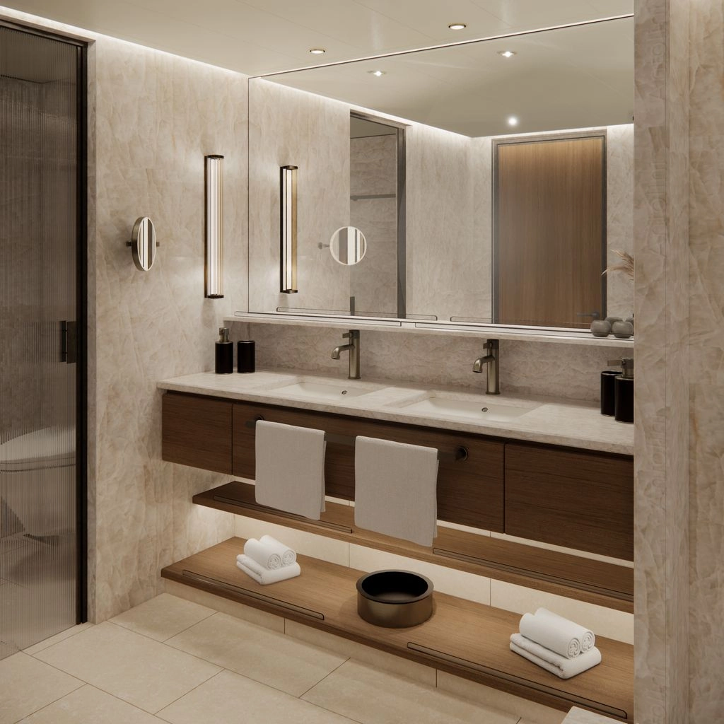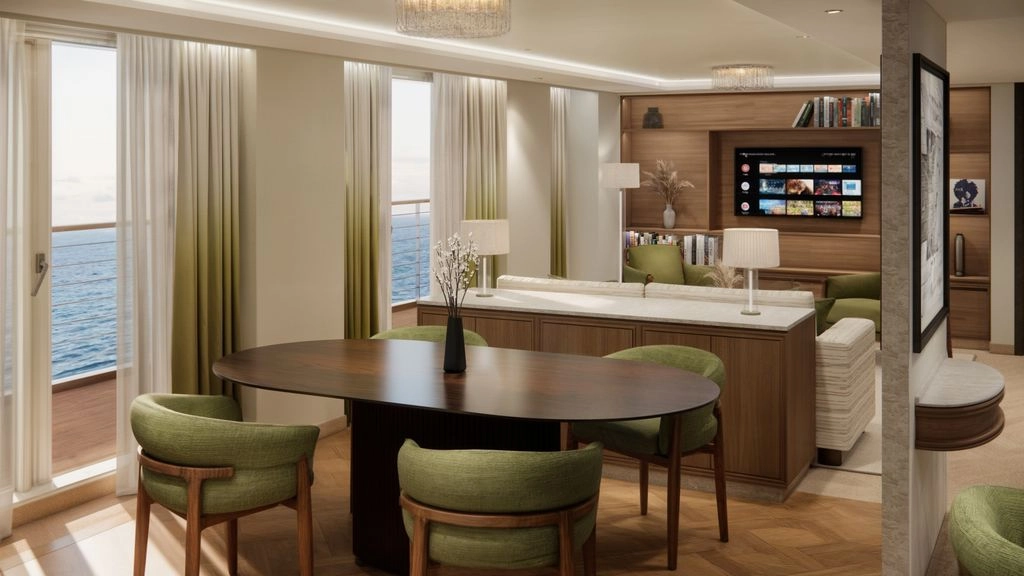 This one-of-a-kind suite is a first for Crystal – an expansive, residence-style sanctuary occupying a premium position at the aft of the ship, offering 270-degree views. Every detail has been carefully crafted to create a space that feels indulgent, refined, and supremely comfortable. The finest craftsmanship and premium materials, including custom wool carpets, walnut floors, marble, and bespoke cabinetry, are evident throughout, while the latest technology has been cleverly integrated to provide a superior experience. A state-of-the-art entertainment system plays music across multiple zones, including on the veranda for seamless indoor-outdoor living. The vast outside space features a private hot tub, outdoor shower, and dining area, while a guest bathroom and butler pantry allow you to entertain in the privacy of your suite. It’s the ultimate home at sea.