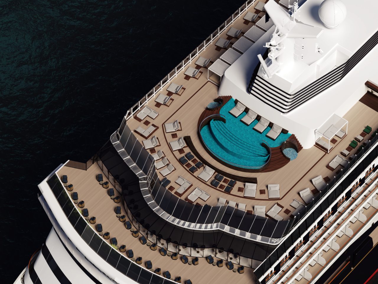 Combined with various indoor and outdoor whirlpool baths on the ship’s promenade deck, the ship has been designed with water as a real focal point of the onboard experience – helping our guests discover their ocean state of mind.