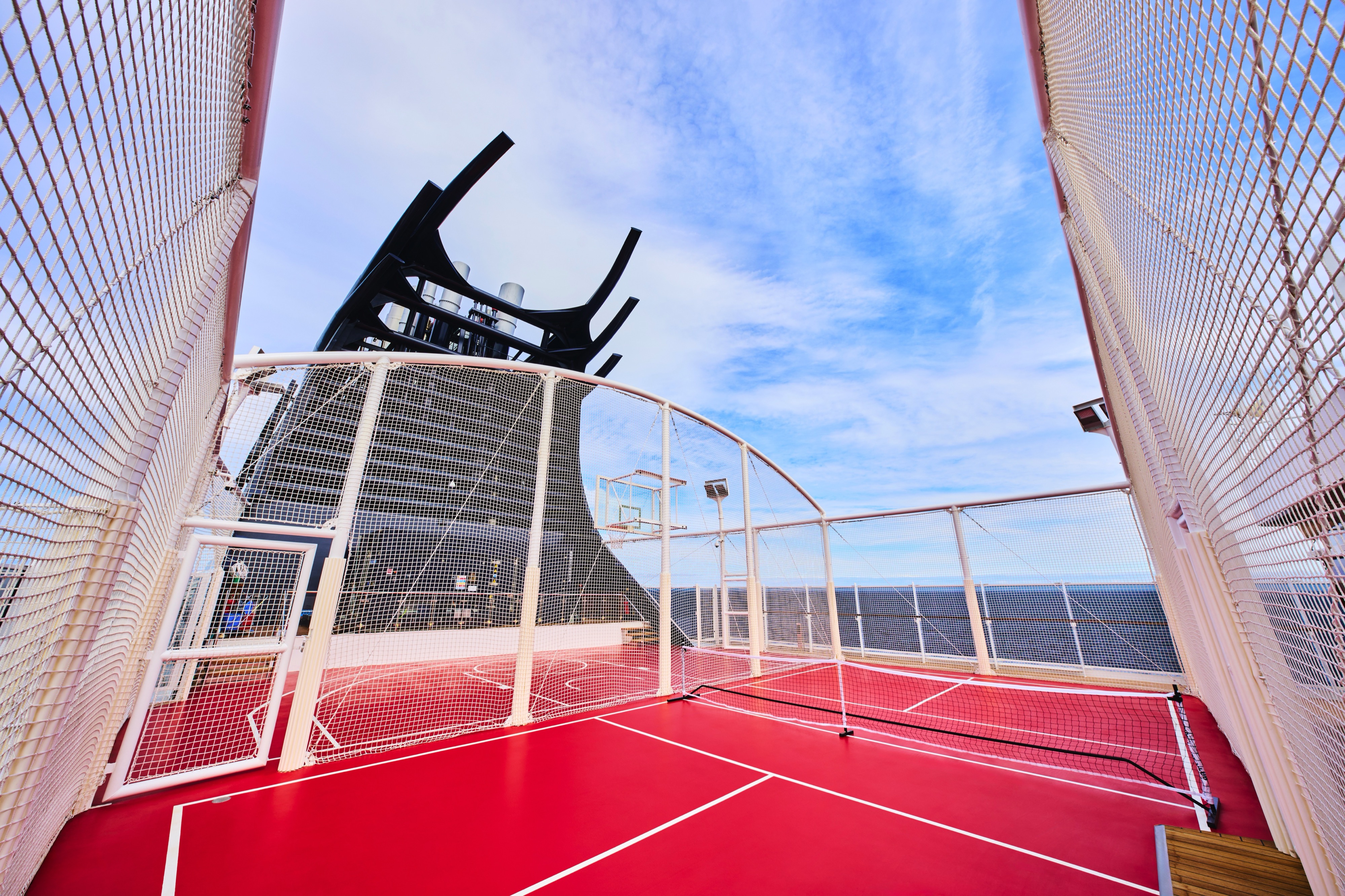 A dedicated space for various activities, such as touch tennis, half basketball and yoga ritual experiences. The use of the space is complimentary for all guests and the equipment such as balls, rackets and other will be provided on board free of charge.