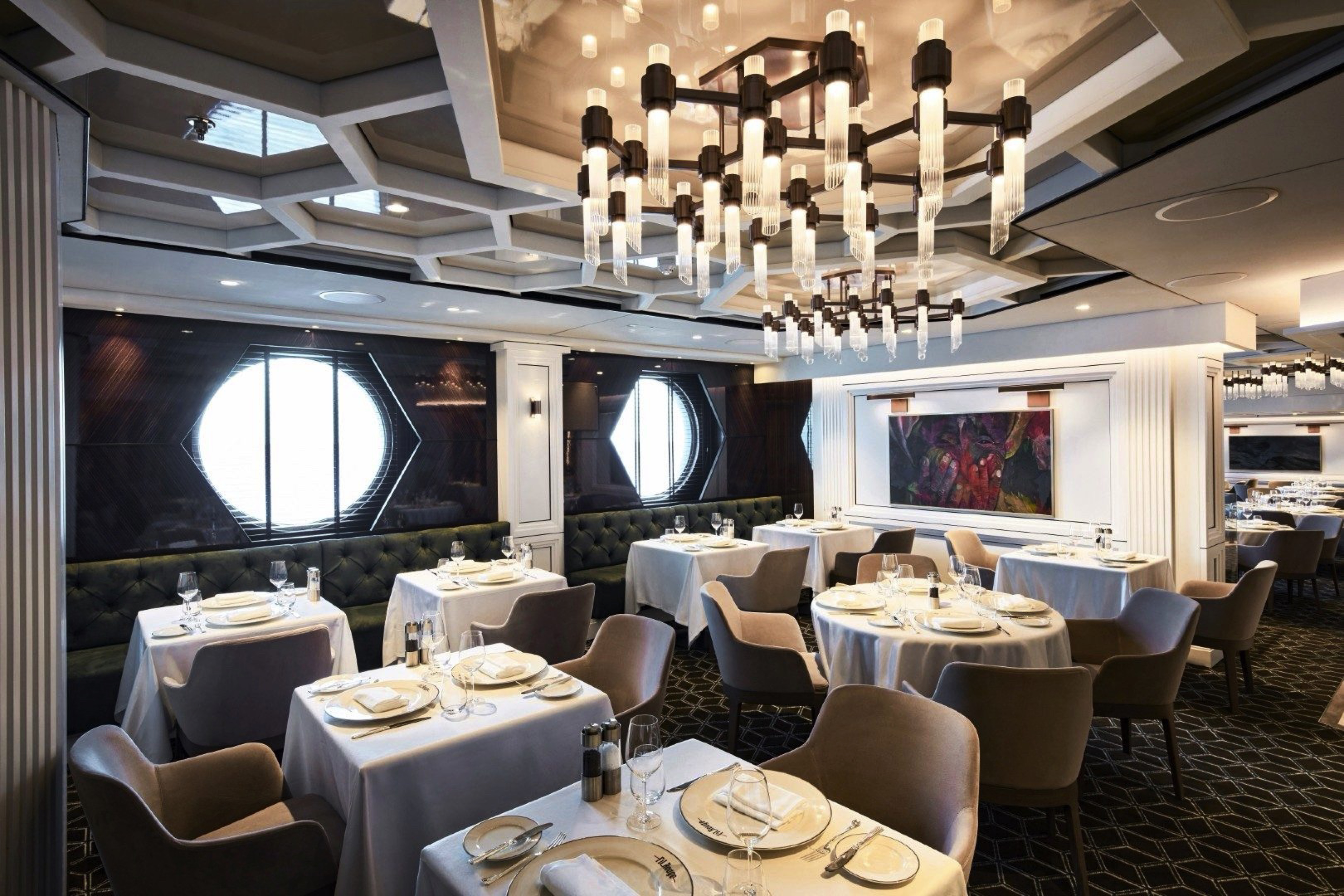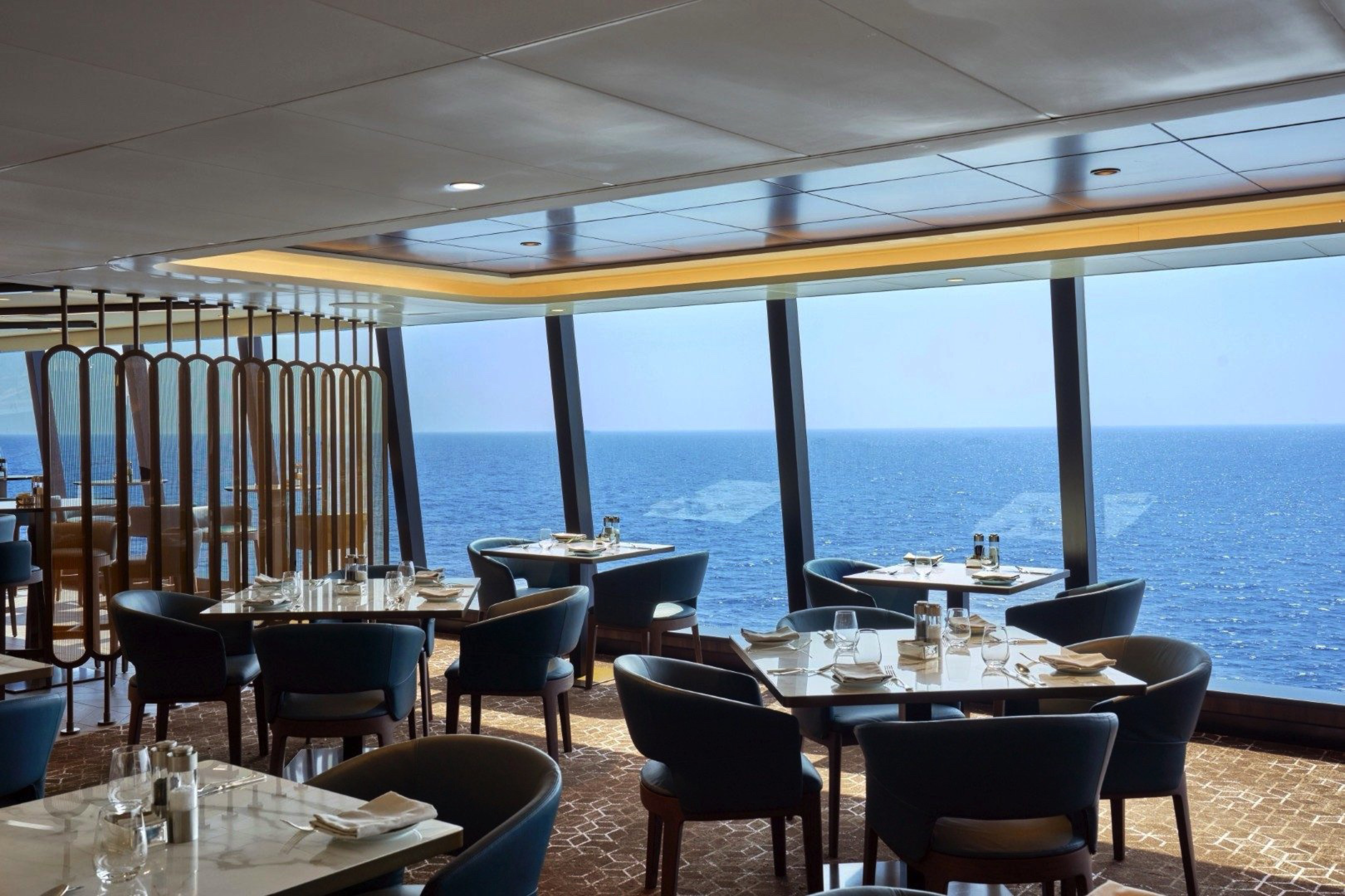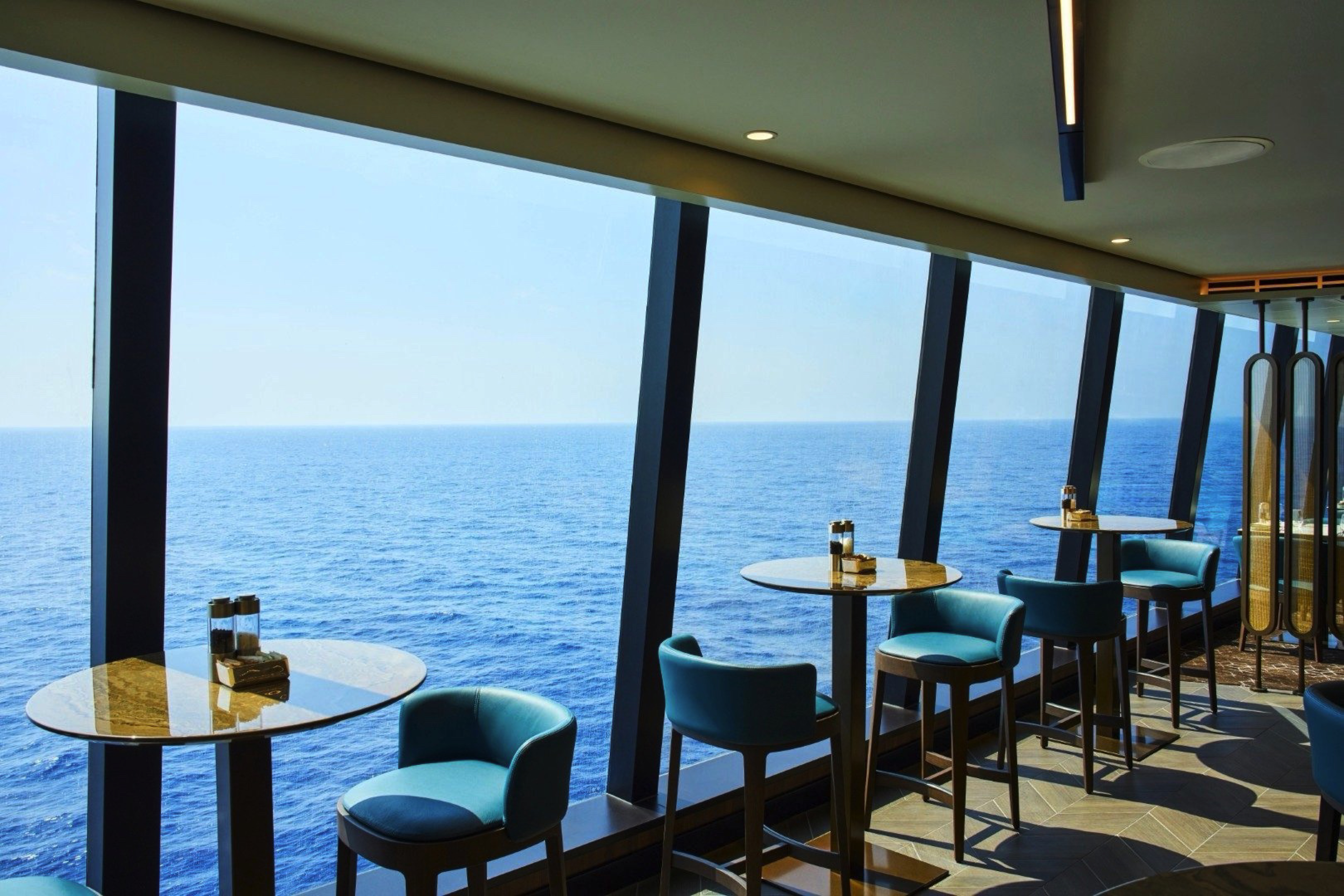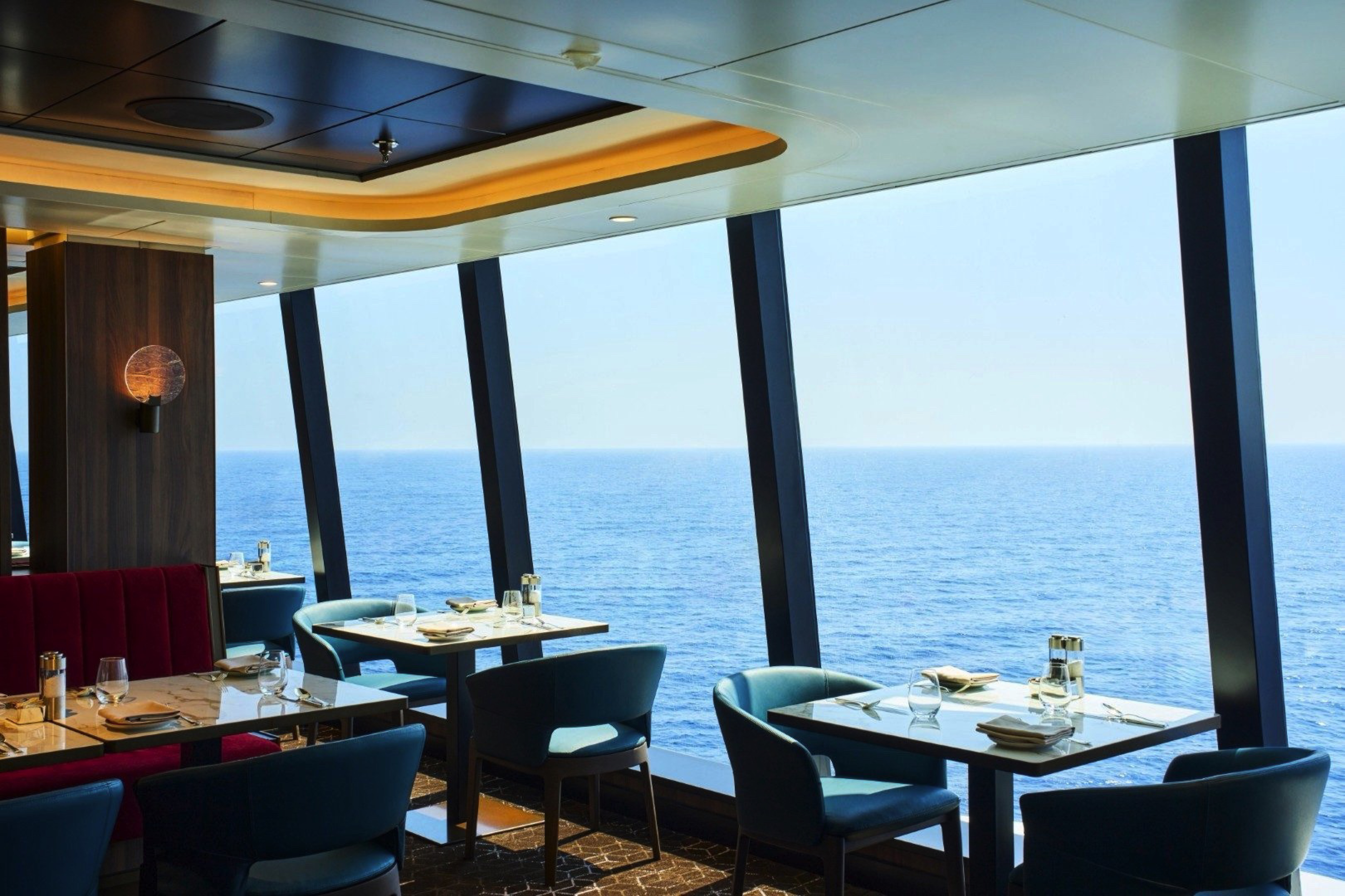 Effortlessly refined in its design, space creates a relaxed, convivial atmosphere, where bright sunshine streams through large portholes and Med-influenced music transports guests on a culinary journey inspired by the sea.
