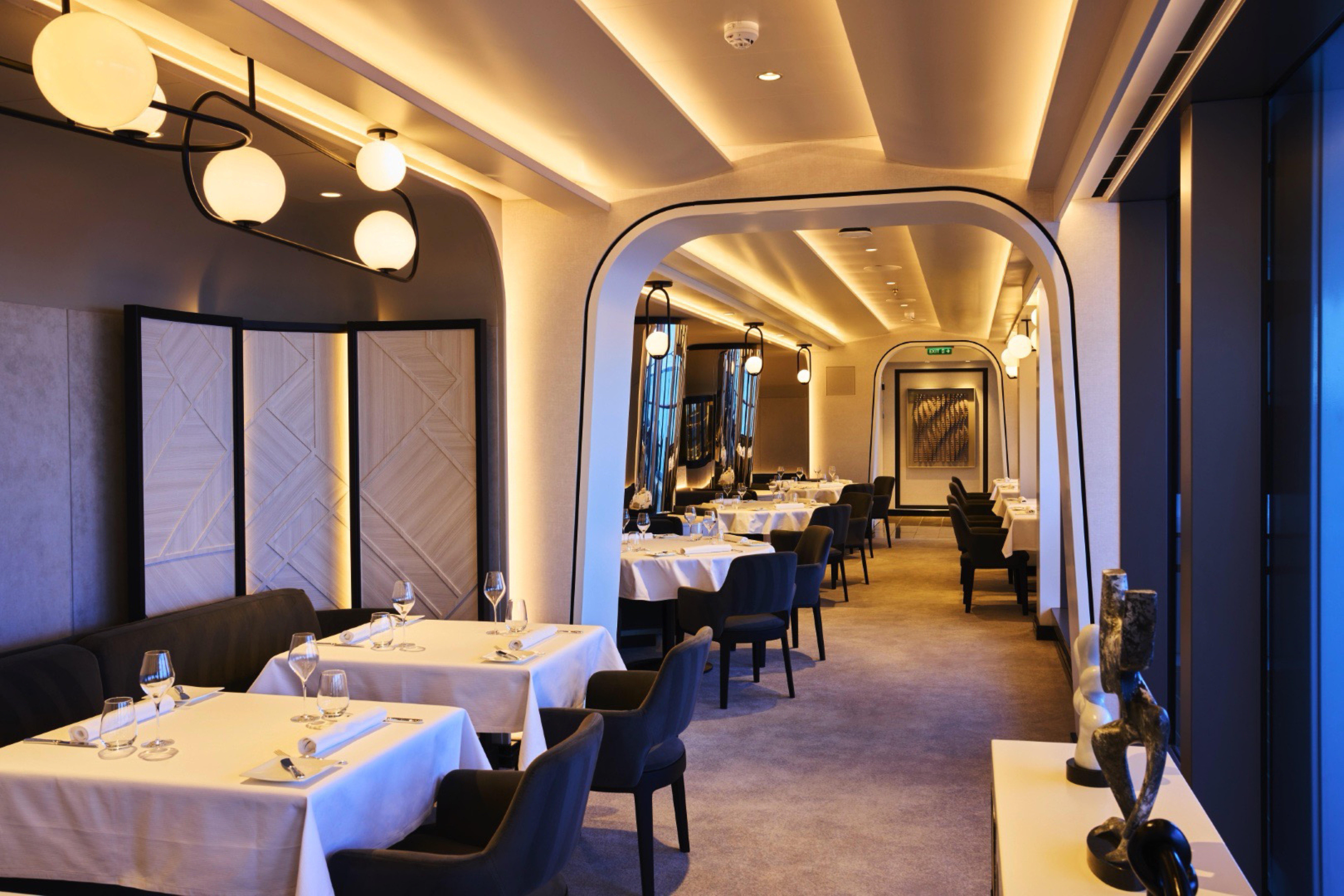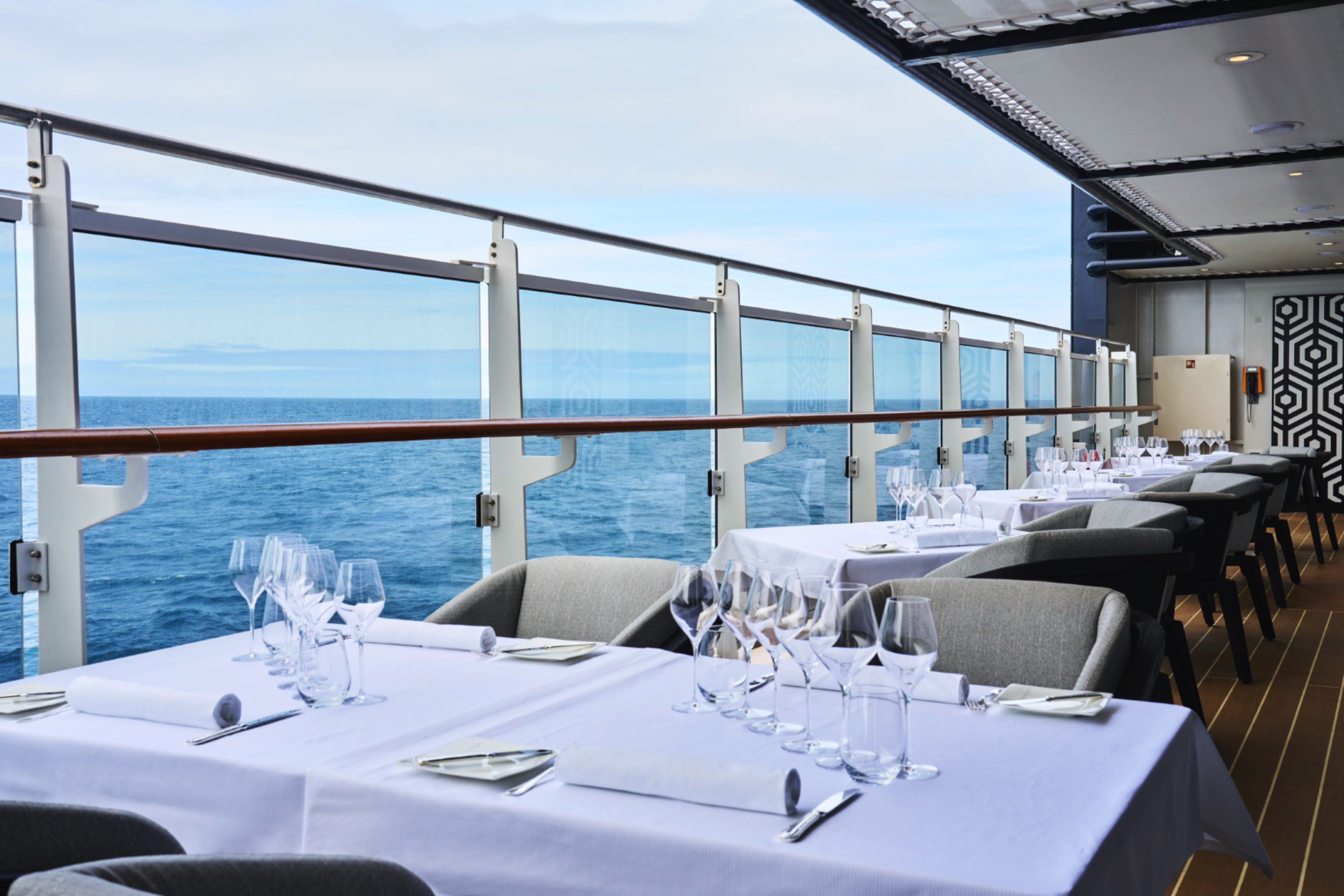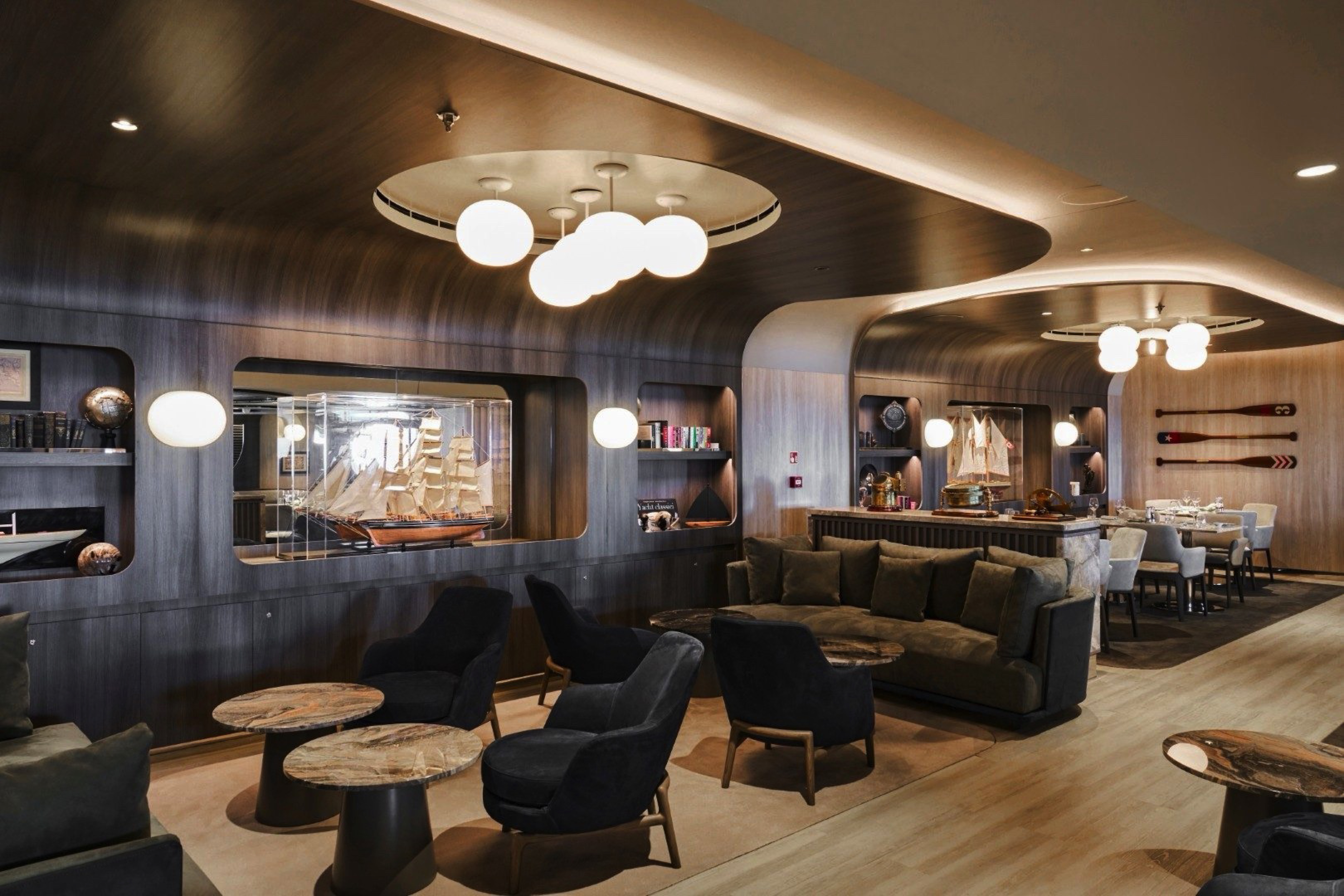 Effortlessly refined in its design, space creates a relaxed, convivial atmosphere, where bright sunshine streams through large portholes and Med-influenced music transports guests on a culinary journey inspired by the sea.