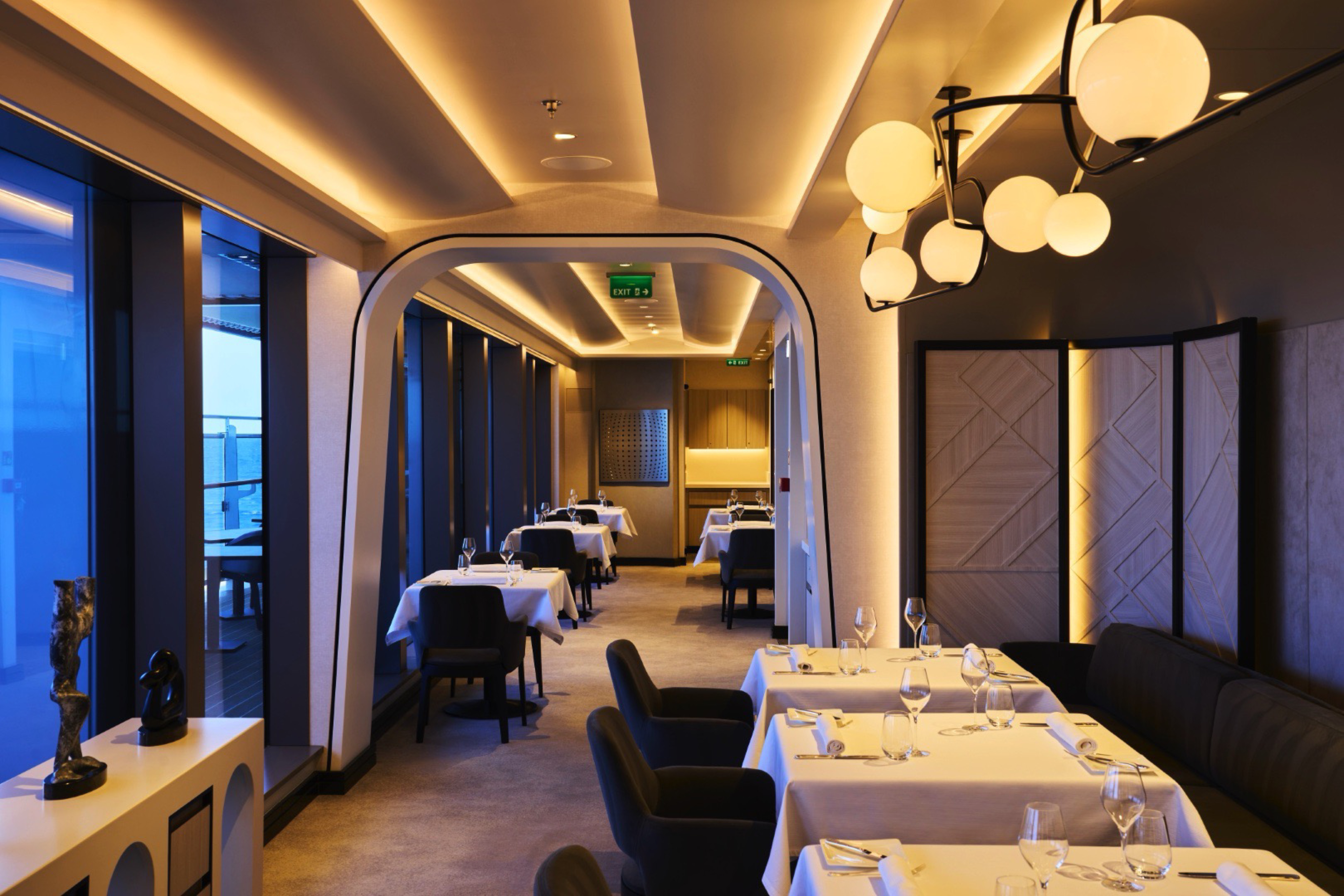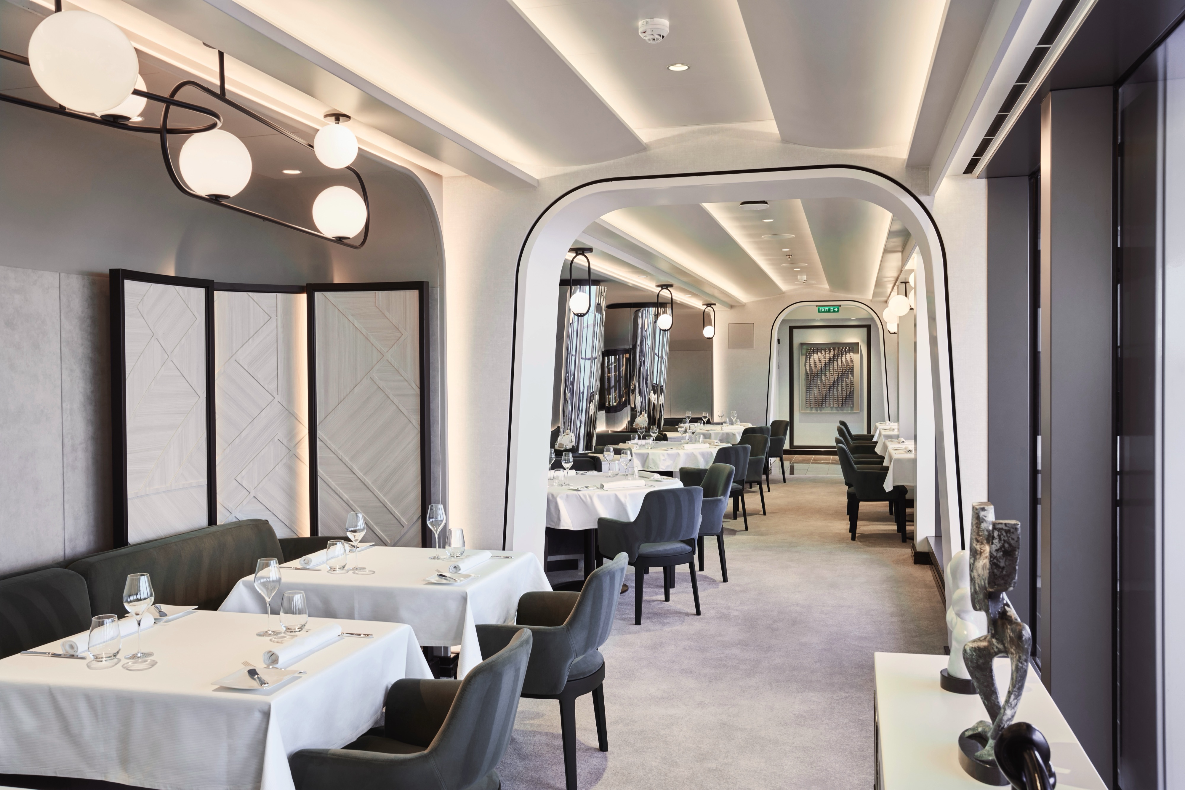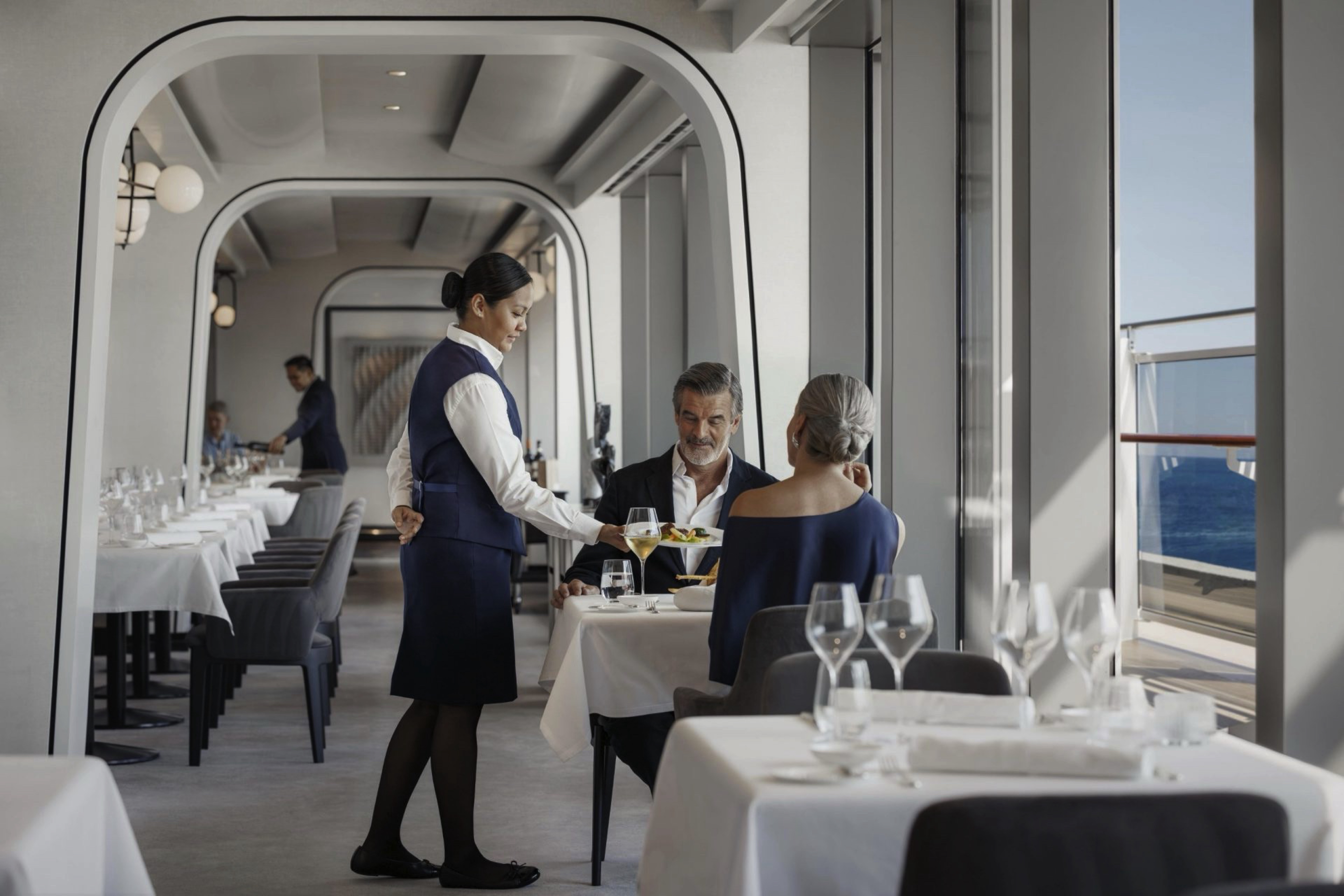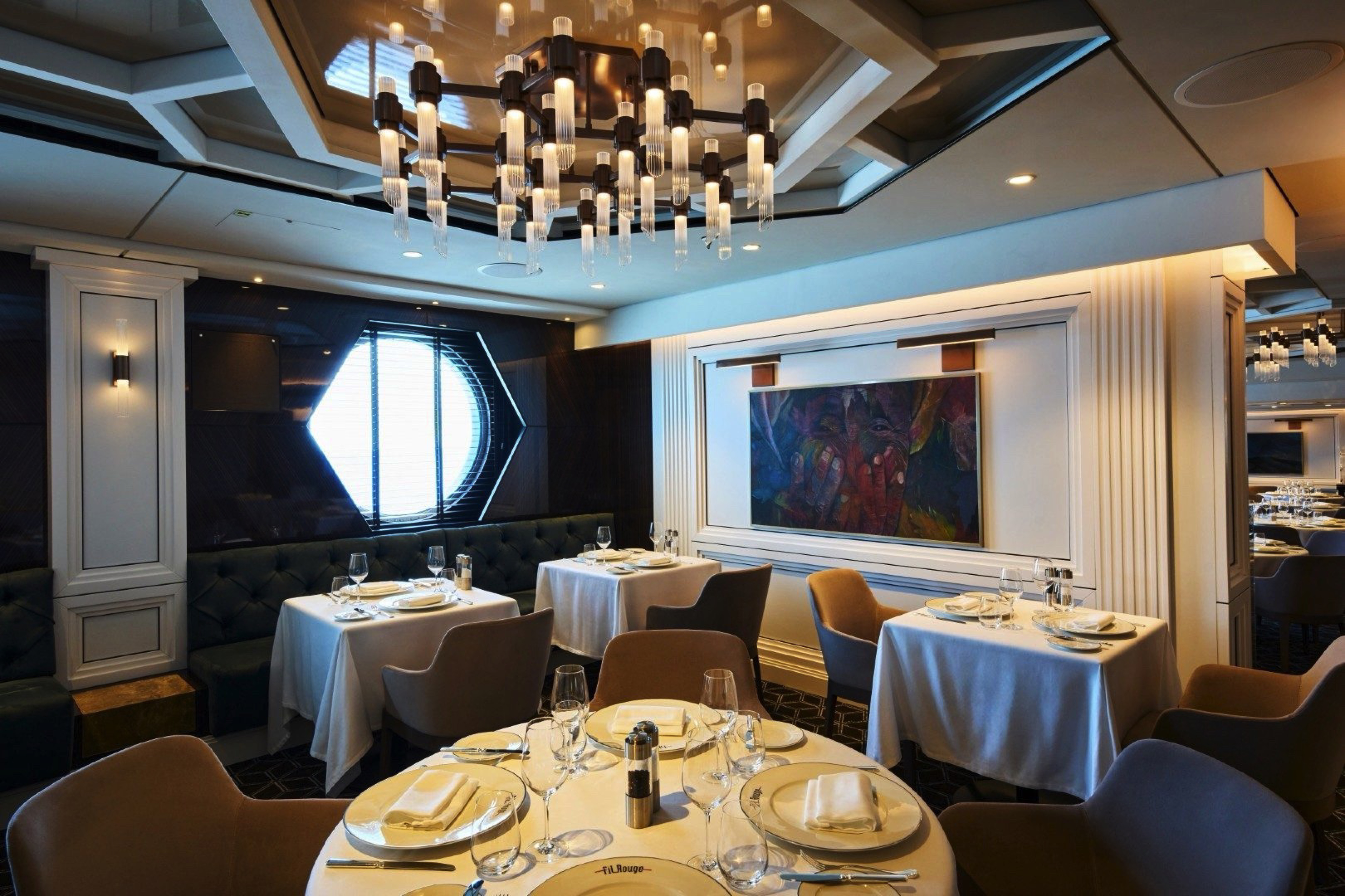 Effortlessly refined in its design, space creates a relaxed, convivial atmosphere, where bright sunshine streams through large portholes and Med-influenced music transports guests on a culinary journey inspired by the sea.