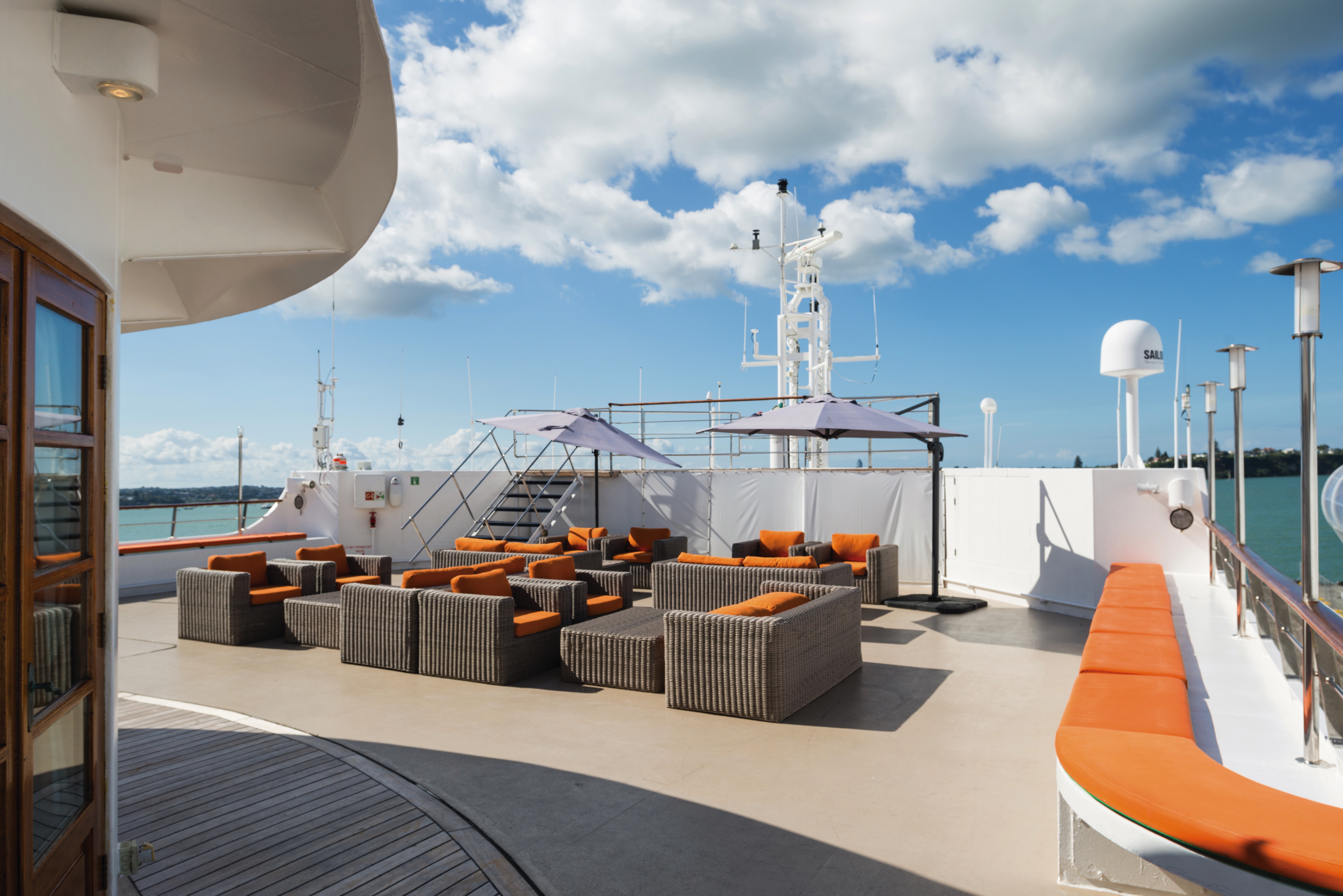The Lido Deck offers outdoor dining with impressive views. The Sun Deck provides the perfect place to unwind, while the Panorama lounge features a bar and floor-to-ceiling windows.