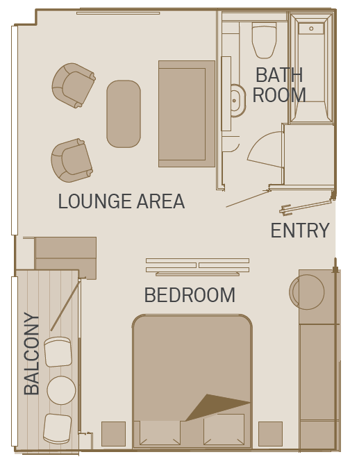 These Suites located on the Diamond Deck are the ultimate in luxury with more space, impeccable service, thoughtful touches, an outdoor balcony, lounge area and an oversized bathroom.