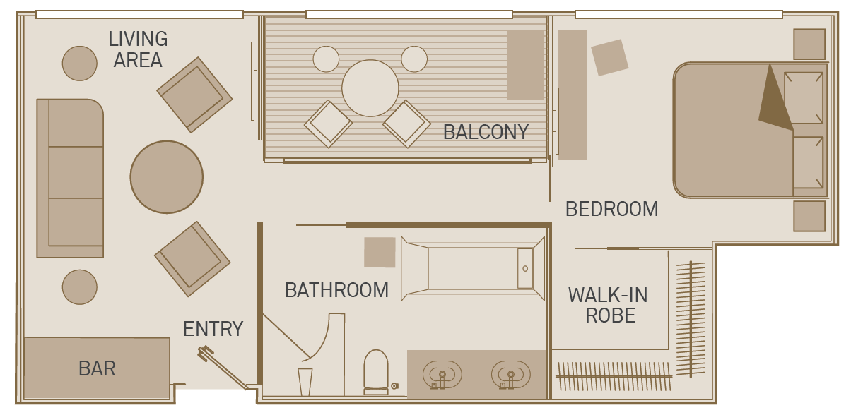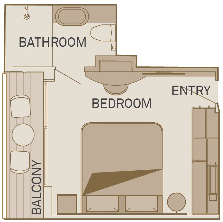 These spacious Suites, located on the Sapphire and Diamond Decks, have a private full-length balcony complete with a Scenic Sun Lounge and elegant en-suite bathrooms featuring a large vanity basin and shower.