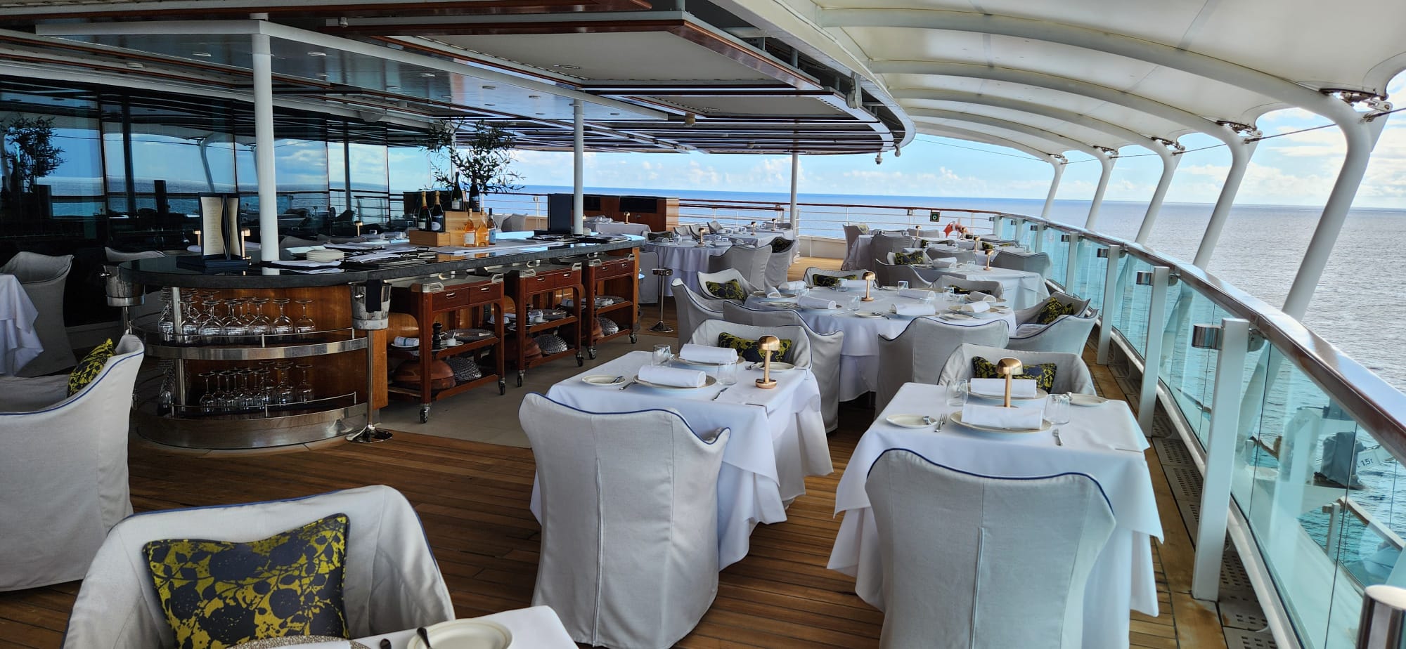 Each evening, our skilled Earth & Ocean chefs create an imaginative array of fresh, inventive dishes—a sophisticated menu celebrating eclectic traditional flavors from around the world, served in a relaxed setting under the stars for a distinctive dining experience unlike any other on board.