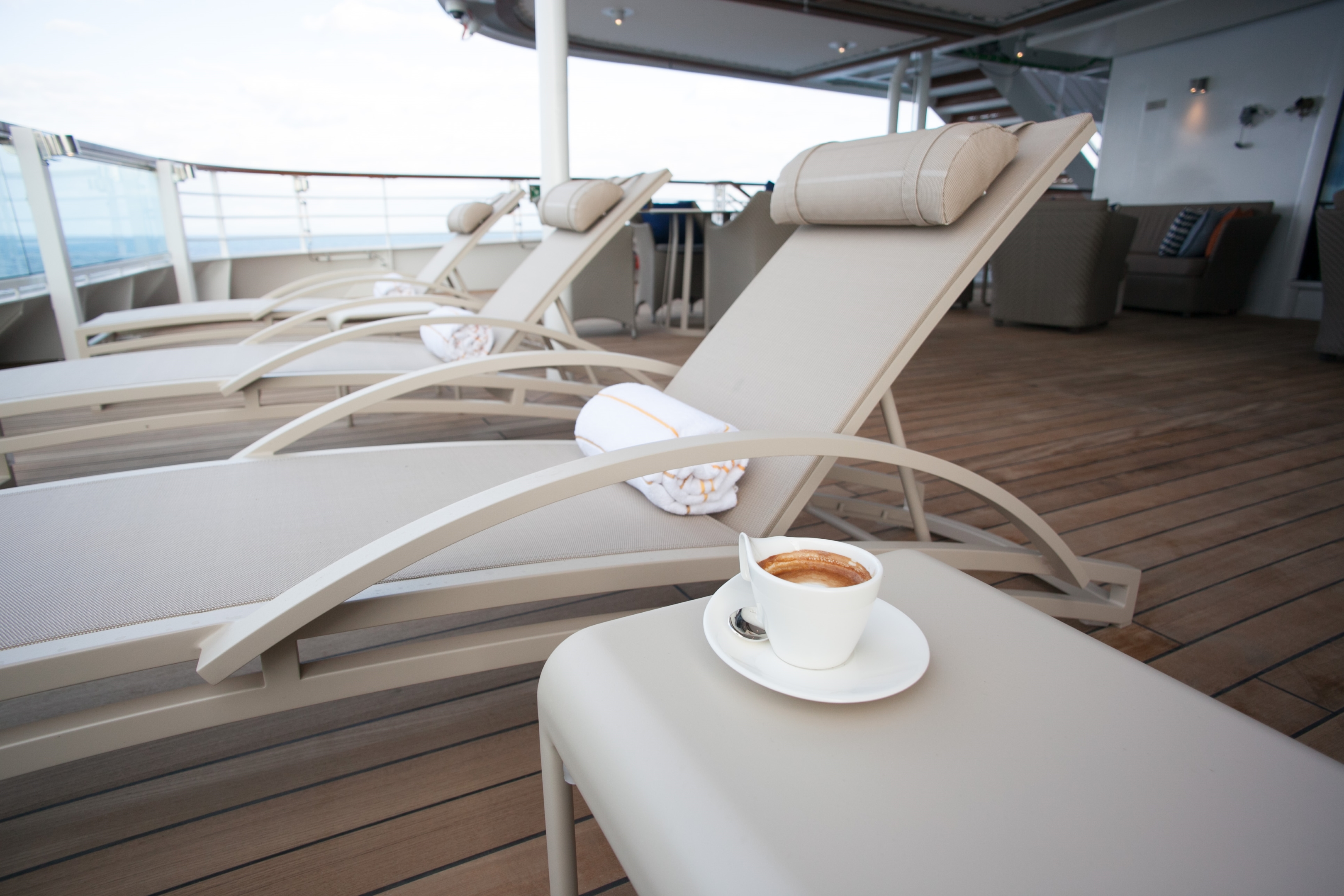 The liveliest lounge on board is the scene of daily afternoon tea service. It is a popular spot for pre-dinner drinks and dancing to live music. After dinner, the dancing music continues, and later a DJ spins dance music until late at night. Another terrace of open deck aft of The Club boasts a plunge pool and two small whirlpool spas.