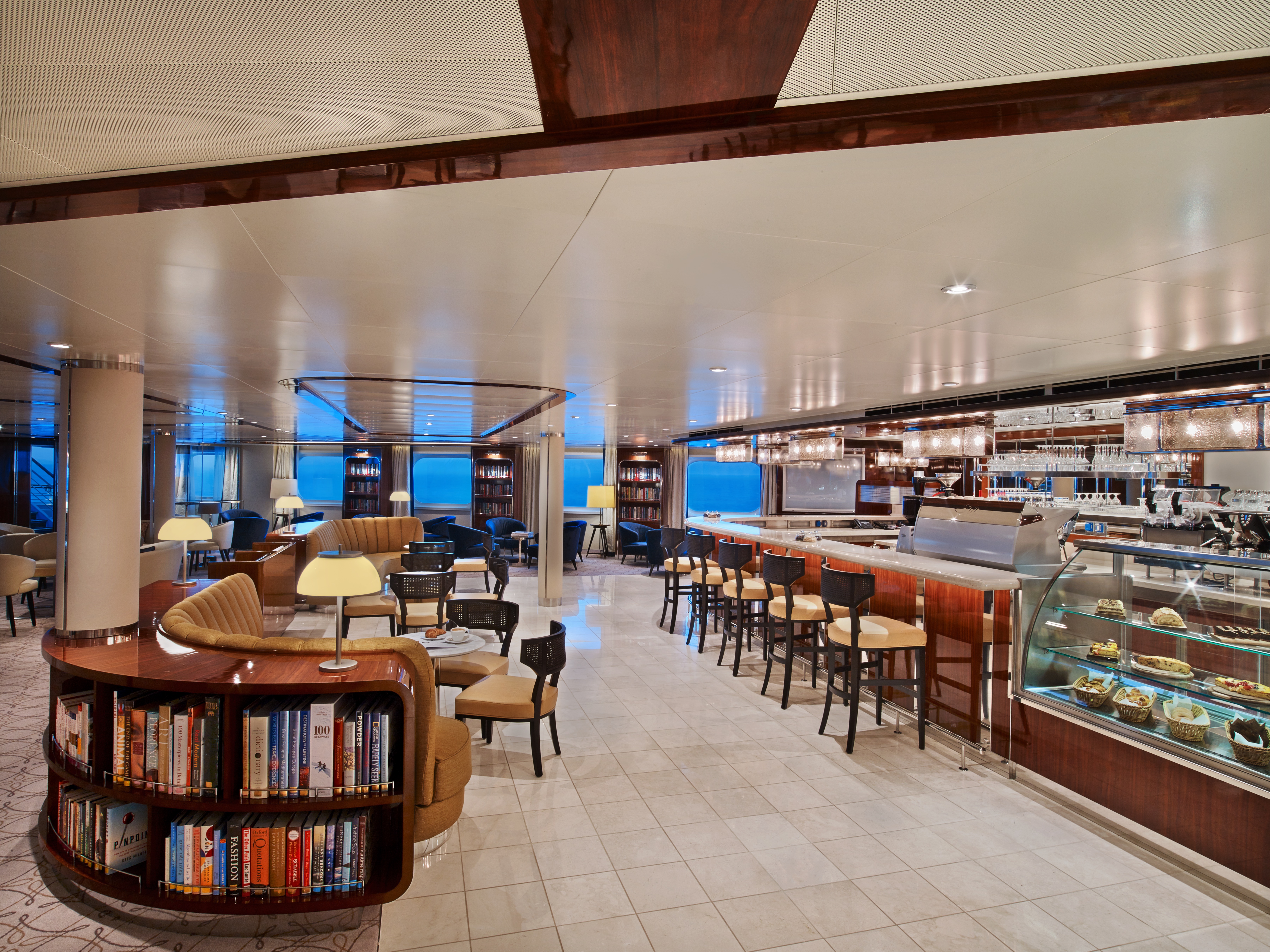 Seabourn Square is the true ‘living room’ of the ships. An inviting sociable space where guests will find a charming European style coffee bar, Seabourn Square has been designed as an open, comfortable environment for guests to interact with onboard officers and the expedition team and engage in conversation with family and new friends. The space is also home to the highly-trained Guest Services staff, who provide a range of concierge services such as general ship information, assistance with special service requests, port and travel information, and more.