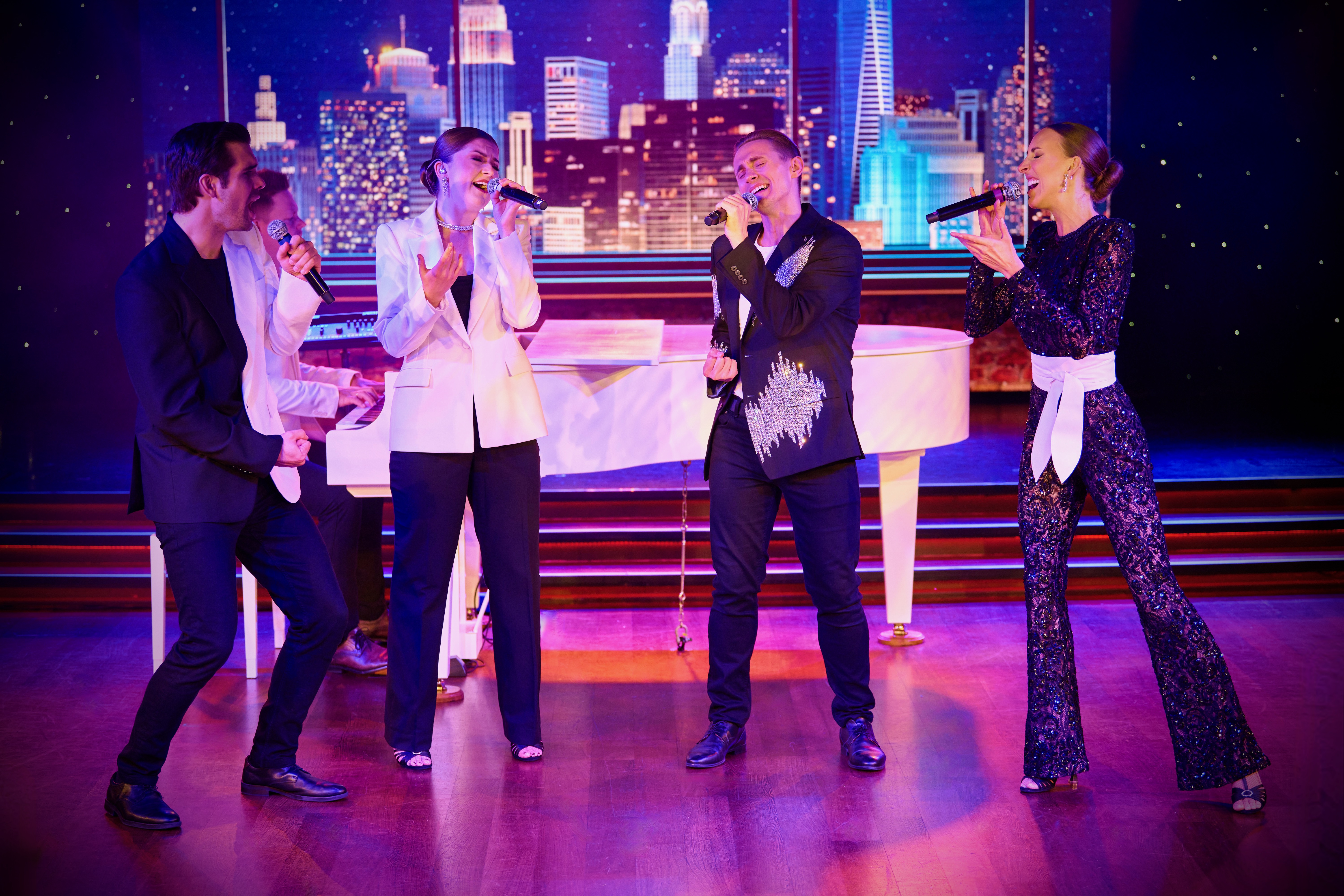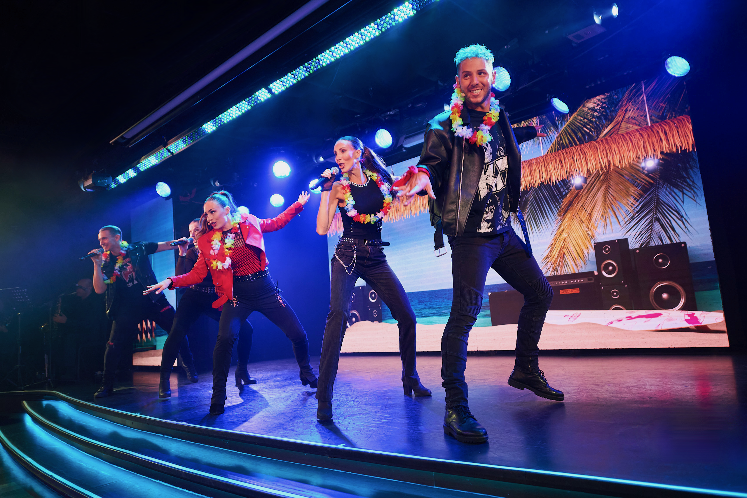 Weather permitting, this high-energy dance party is hosted poolside and under the stars by the entire entertainment team, featuring performances by The Band, vocalists and dancers. There is even the possibility your Cruise Director and Assistant Cruise Director might jump on stage to perform, as well! Guests can expect music that appeals to everyone’s taste with a great mix of hit songs. It’s a real treat and guests LOVE Evenings Under the Stars!