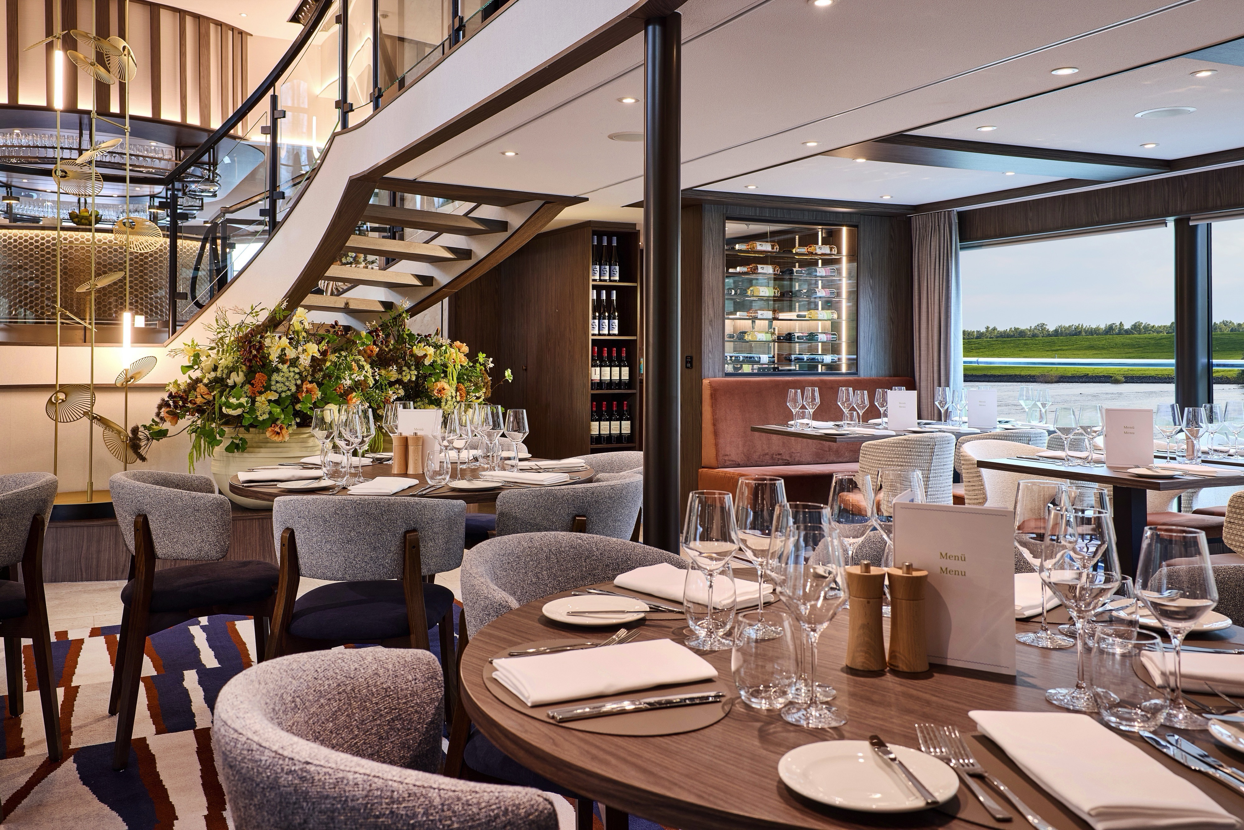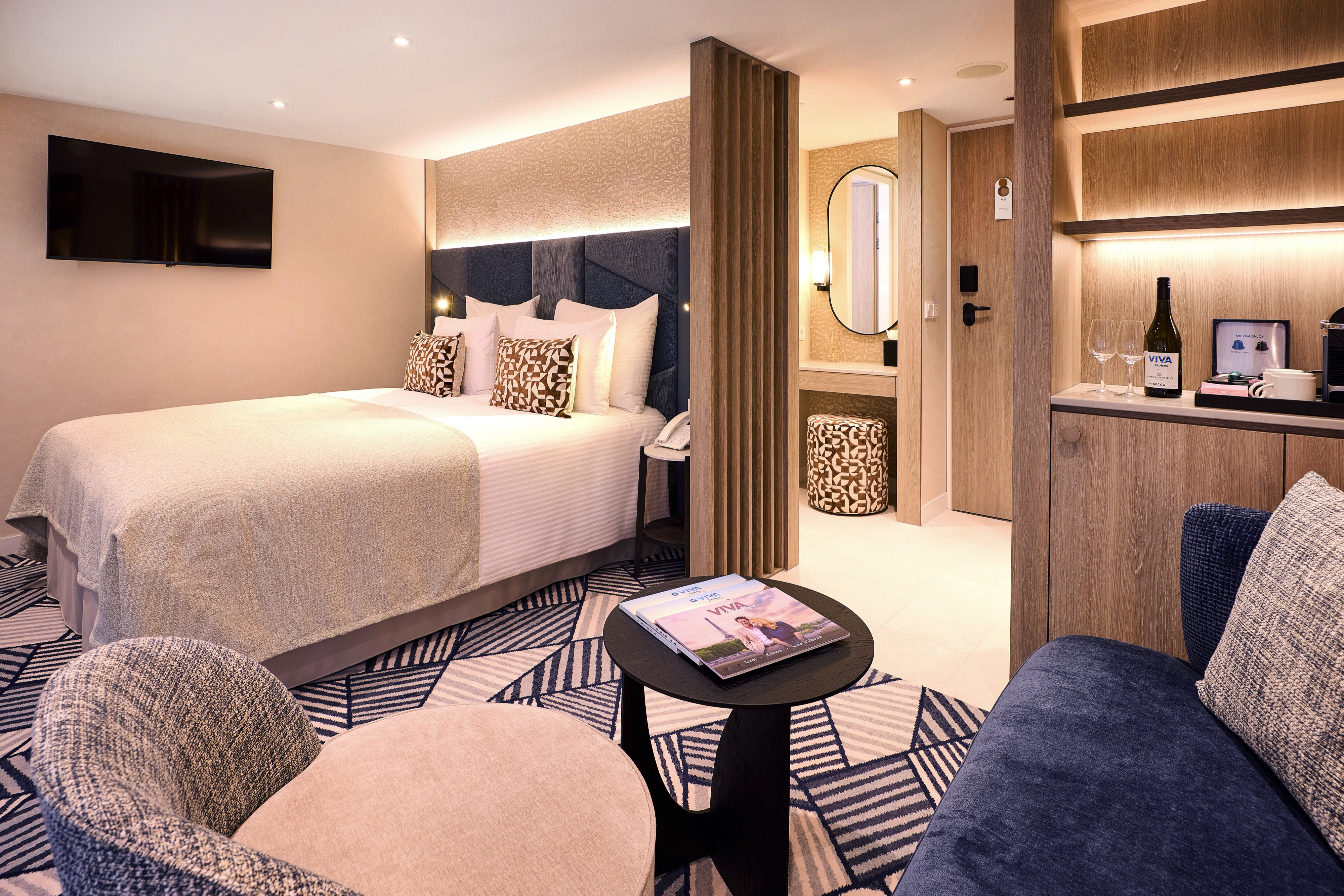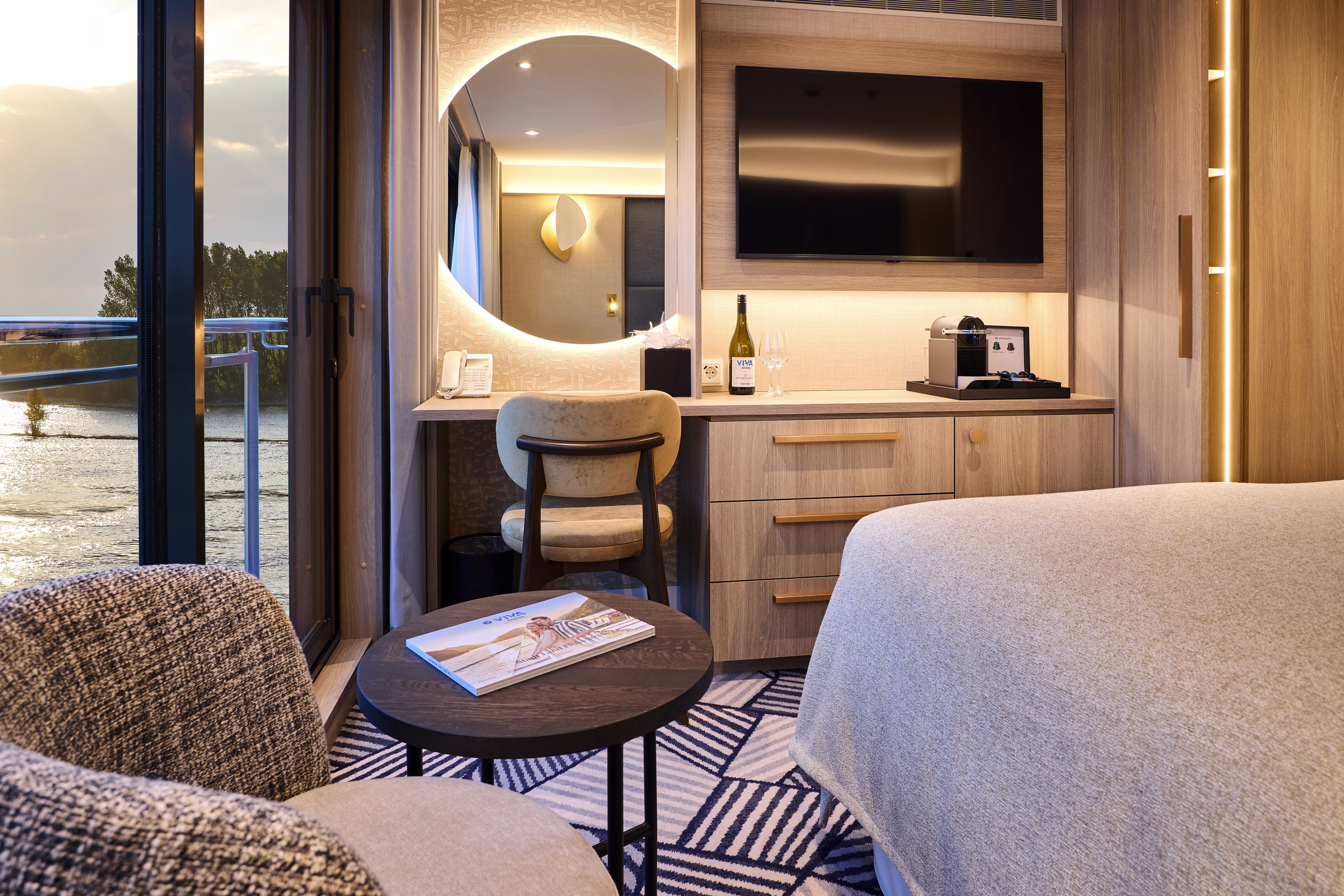 The MS VIVA ENJOY is the third newbuilding of VIVA Cruises and invites with 95 cabins up to 190 passengers to feel-good moments on board. On the Diamant Deck there are eight suites, which invite with 24 m² size and a French balcony to enjoy the beautiful view. On the Diamond Deck as well as on the Ruby Deck there are 15 m² 2-bed cabins, which have a French balcony. On the Emerald Deck, the 2-bed cabins have windows that cannot be opened. All cabins are perfectly equipped with flat screen TV, included mini-bar, Nespresso® machine, beauty products from RITUALS®, hairdryer, safe, air conditioning, shower and toilet and leave nothing to be desired.