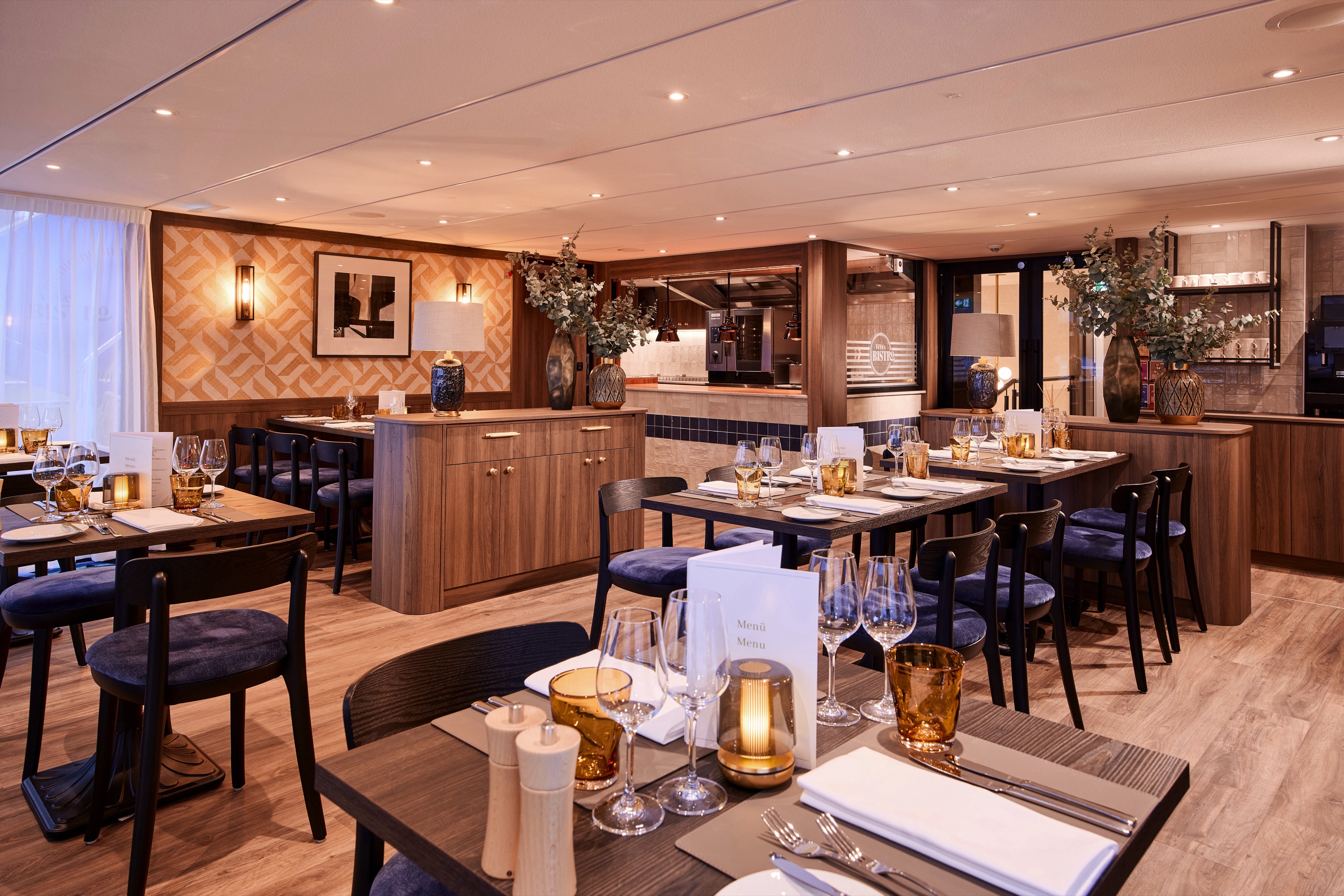 “VIVA’s Bistro” at the stern of the VIVA ENJOY as an alternative to the main restaurant with classic dishes for dinner: