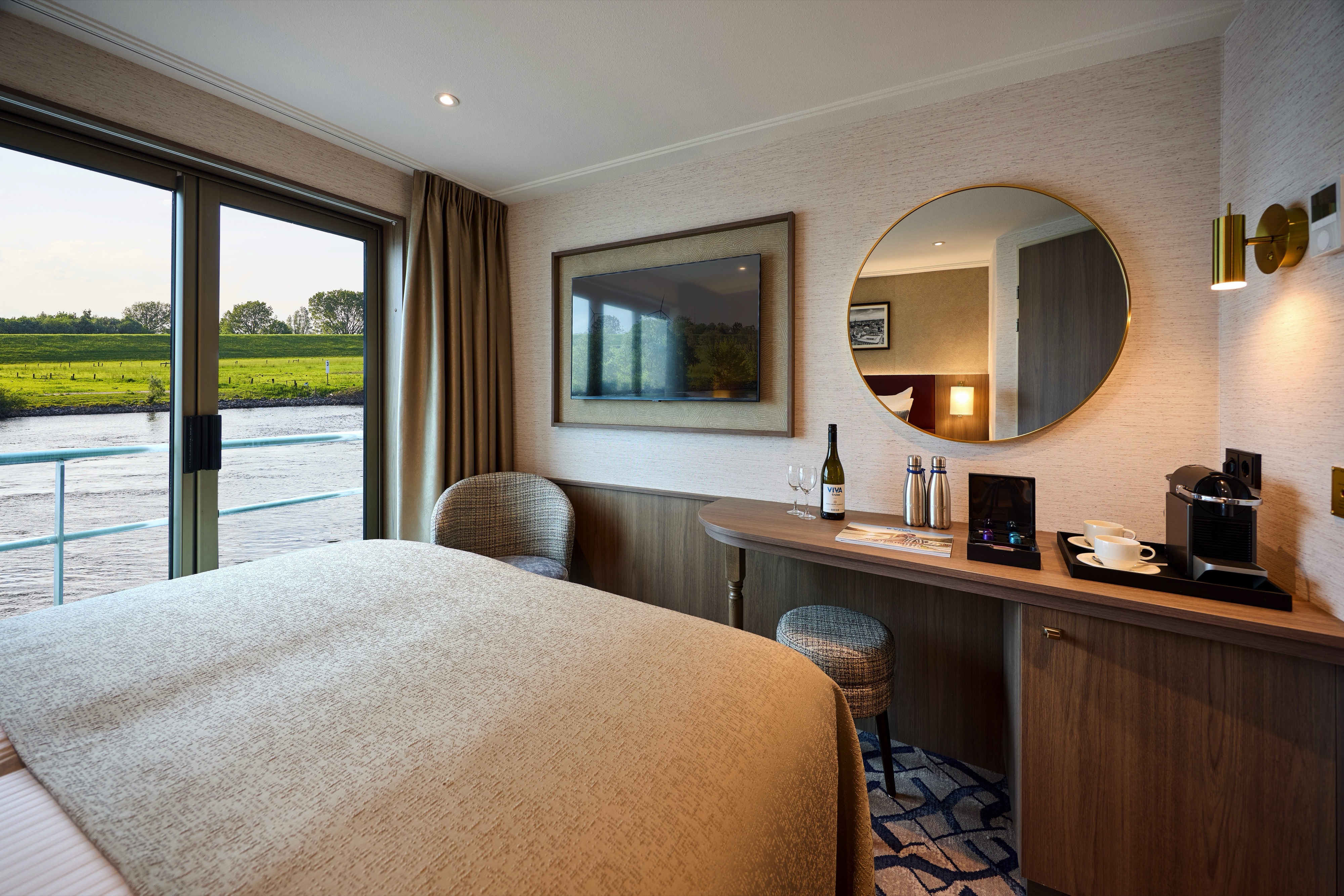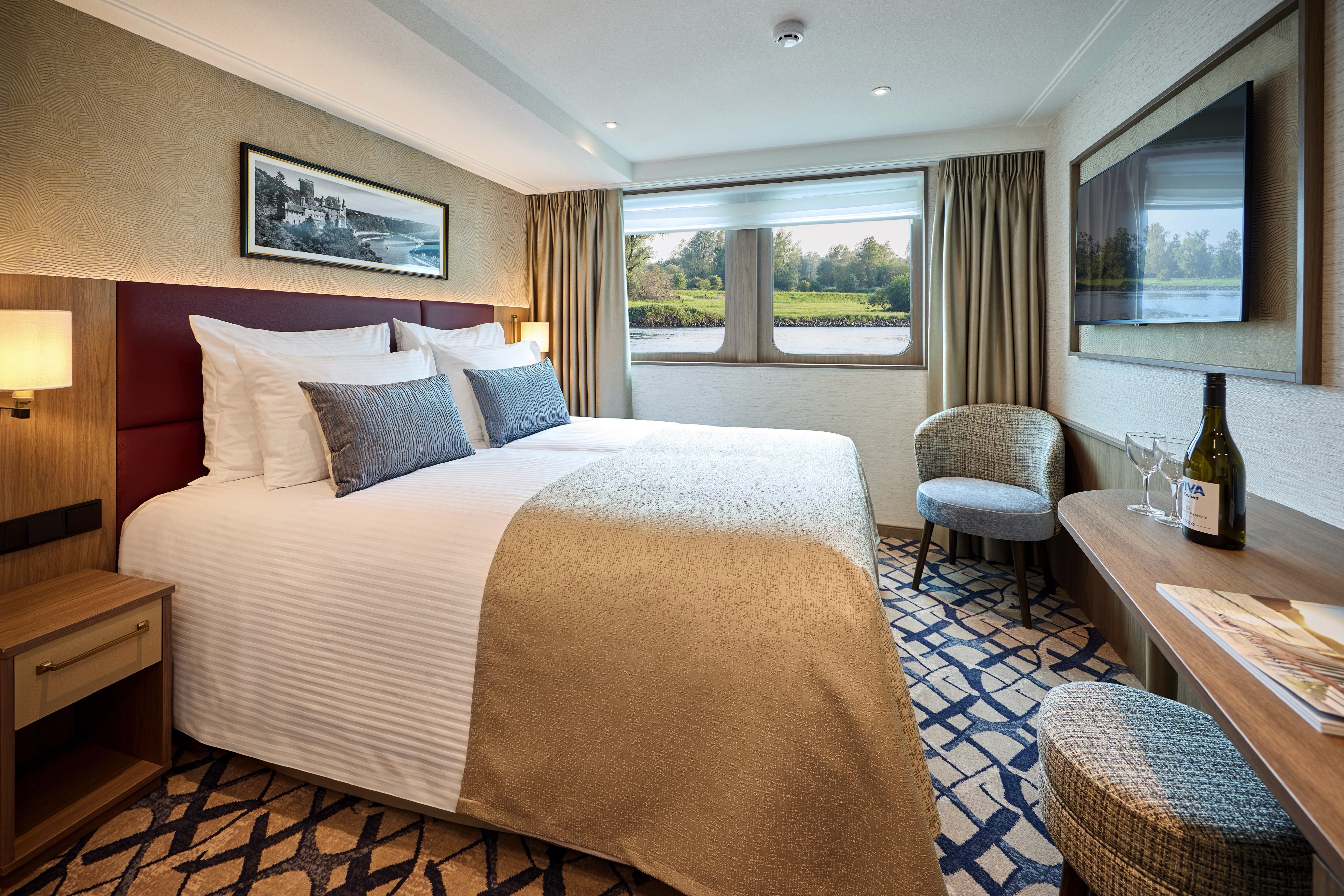 Experience with the VIVA RUBY (formerly SWISS RUBY) a journey filled with feel-good moments and pleasure. On the premium ship you can fully relax. Enjoy the beautiful view from the sun deck while enjoying a drink on a deck chair. Let the chefs on board spoil you with gourmet meals in the main restaurant. In the panoramic lounge, you can comfortably enjoy your coffee or drink while watching the passing scenery. Come on an unforgettable journey with VIVA RUBY.