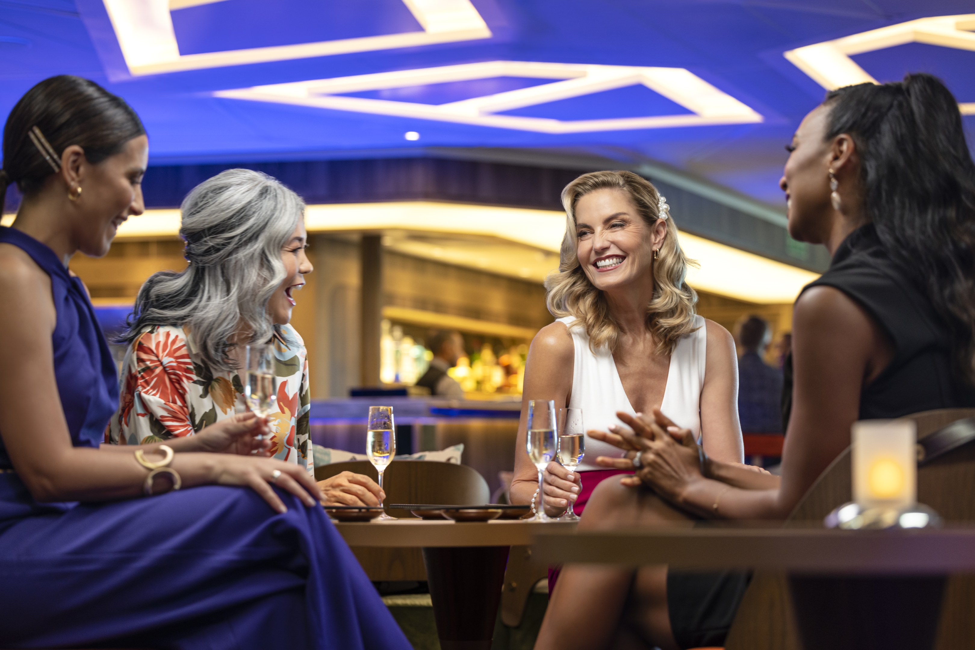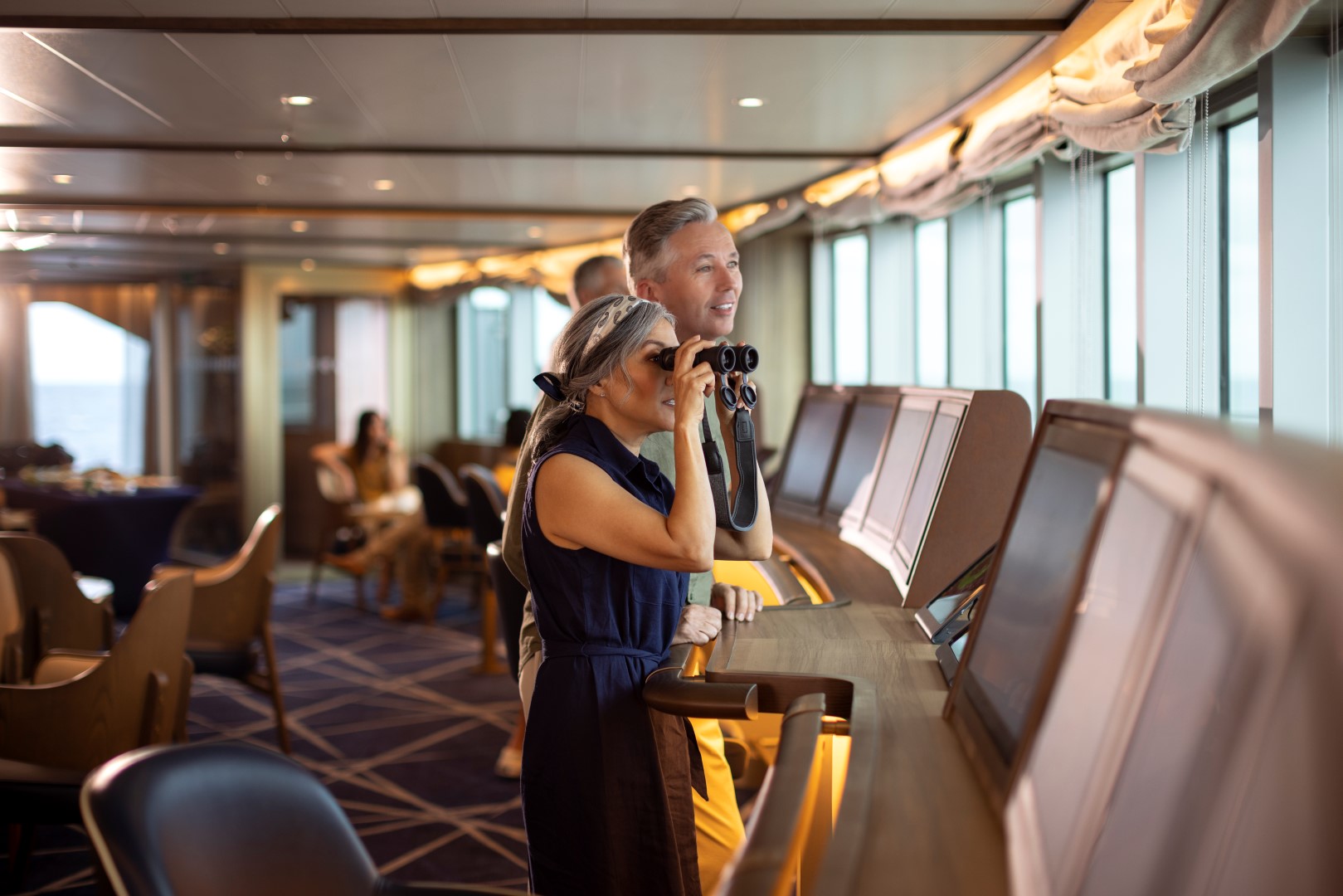 The Constellation Lounge is the highest indoor viewing point on each ship. Floor-to-ceiling glass walls wrap around the space, offering guests stunning 270-degree, outward-facing views as far as their eyes can see, heightening their expeditionary spirit while bringing them closer to wildlife and wonders at sea and in port.