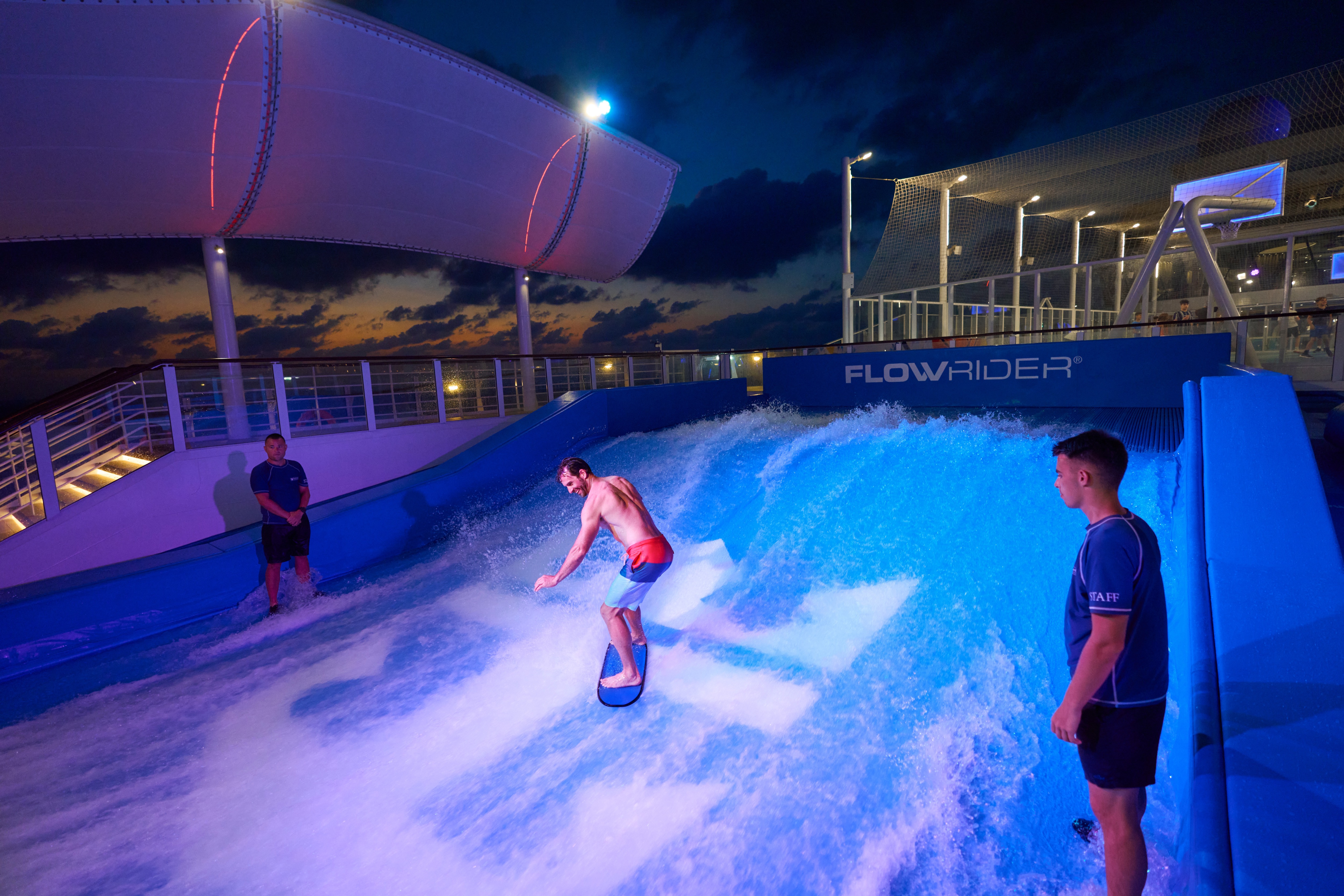 Surfs up. Bottoms up. After hanging 10 on the FlowRider® surf simulator, hang out at Wipe Out Bar with a refreshing cocktail, or sip a cool tropical concoction while you soak up the sun.