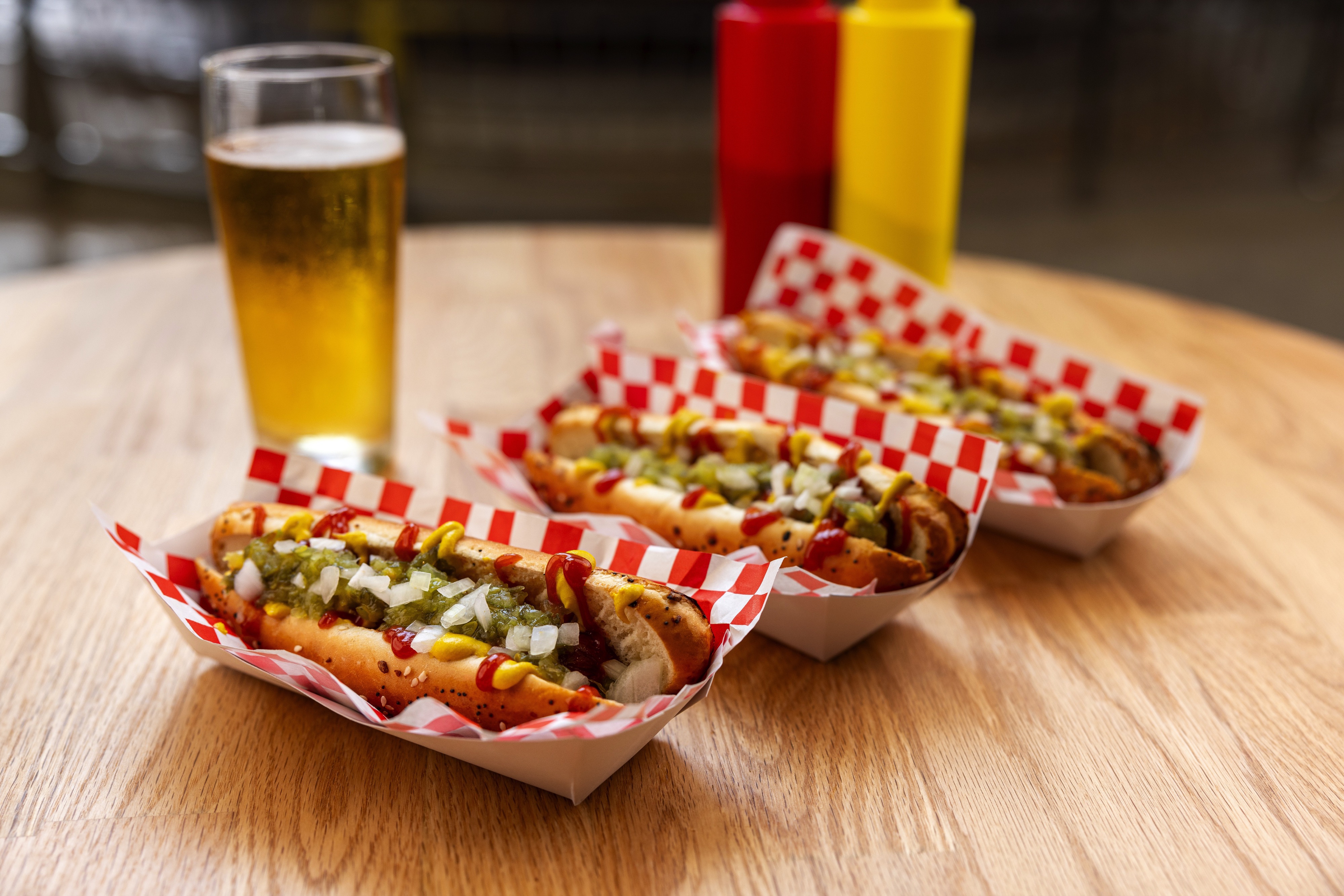 Pro tip: Customize your hot dog at Dog House with a wide variety of condiments and toppings — all available self-serve.