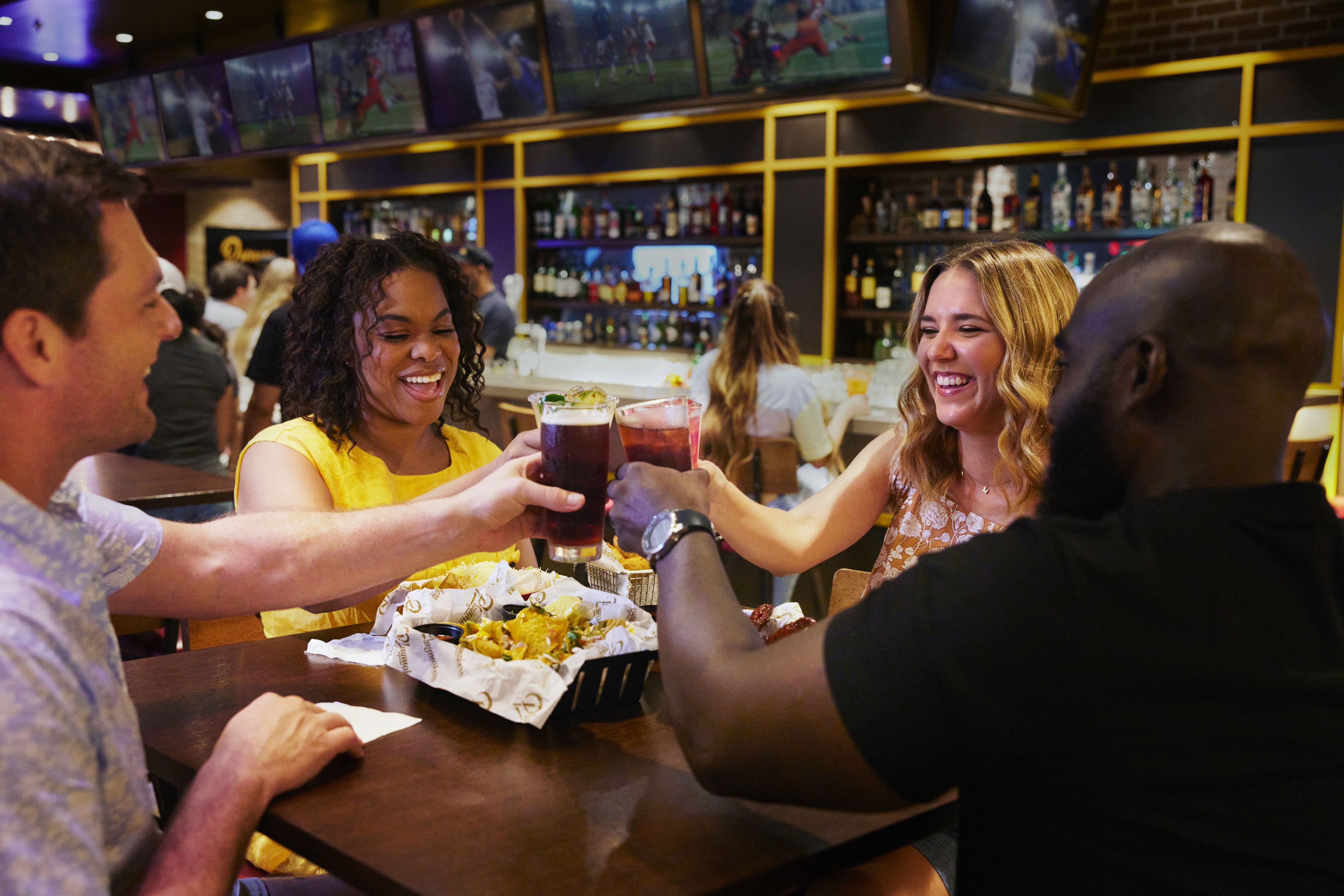 With a menu of game-day favorites and icy-cold draughts on tap, anything you order at Playmakers Sports Bar & Arcade is a winner. And while you’re working on a signature Playmakers Burger or the five-scoop Touchdown Sundae, you can catch your home team live on dozens of screens or face off against your friends in the arcade.