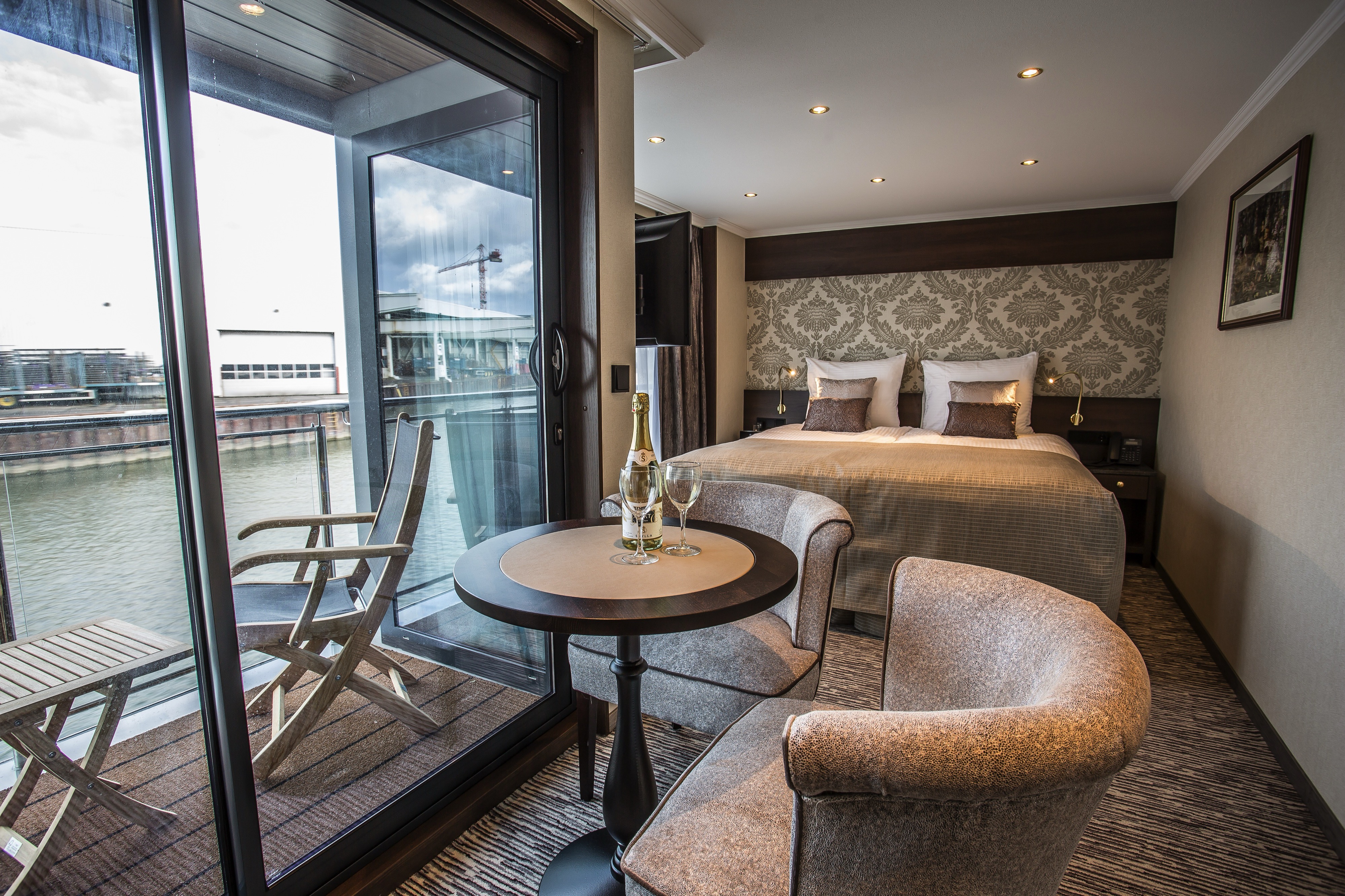 Bringing your cruise to another level, why not upgrade to a Superior Suite. Substantially larger at 23 square metres (247 sq. feet) and with the additional space devoted to the living area, you will immediately notice the benefit as you relax in your stylish surroundings. Of course the identical high quality furnishings and fittings as the standard suite are evident throughout, again with stunning views from the panoramic floor to ceiling sliding glass doors.