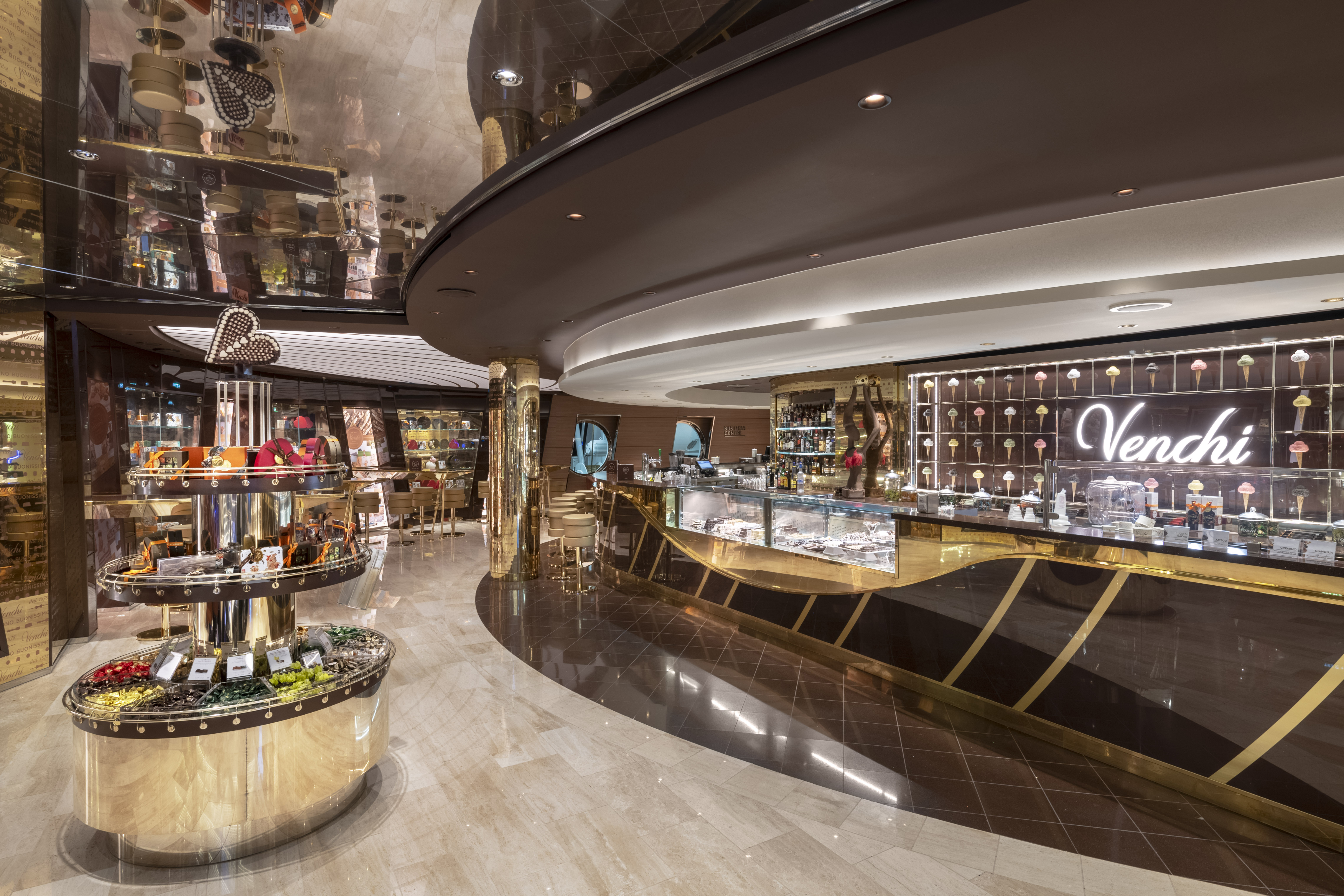 A real chocolate experience by Venchi, the best luxury chocolate since 1878. A chocolate, gelato and coffee corner where guests can indulge in some of Venchis finest treats while watching the Venchi maîtres chocolatiers creating authentic Italian recipes through the glass window overlooking the kitchen lab.