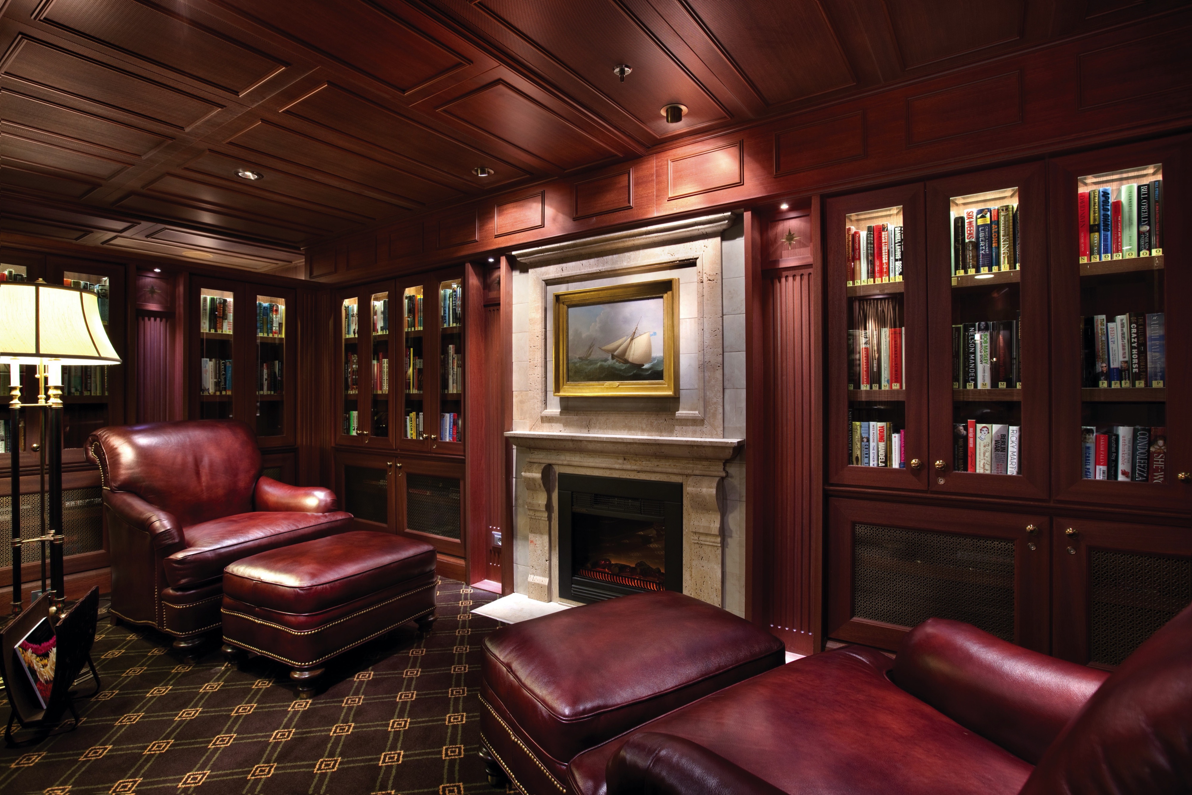 Just as sailing aboard Oceania Cruises recalls the elegance of the Golden Age of Travel, our inspired English-style library is reminiscent of a charming English country estate where you can while away the hours in ultimate comfort. There is something magical about the dark, rich woods; the plush high back chairs; the cozy fireplaces and rows of books lining the walls, each a new world waiting to be discovered.