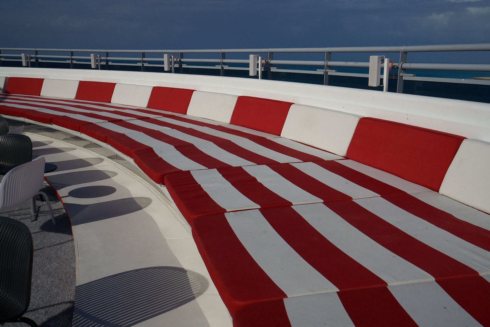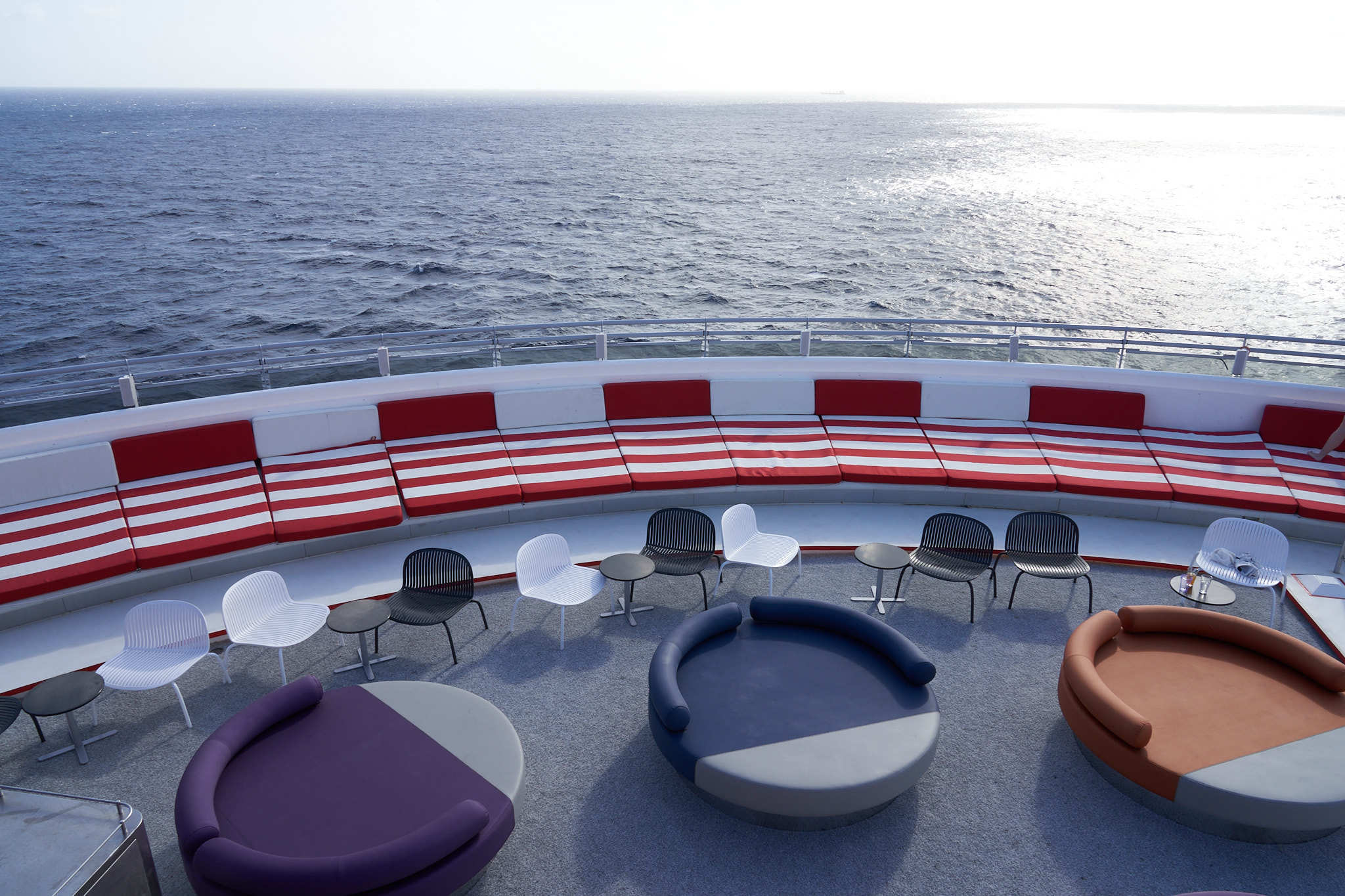 Our signature, Virgin-red running track forms a halo-like vision over the ship allowing you to sweat, strut or stroll. Because for some of us, the only kind of running we do… is from our problems. And don’t forget SPF – because our track is outside and the sun, unlike your problems, will catch up with you no matter how fast you run.