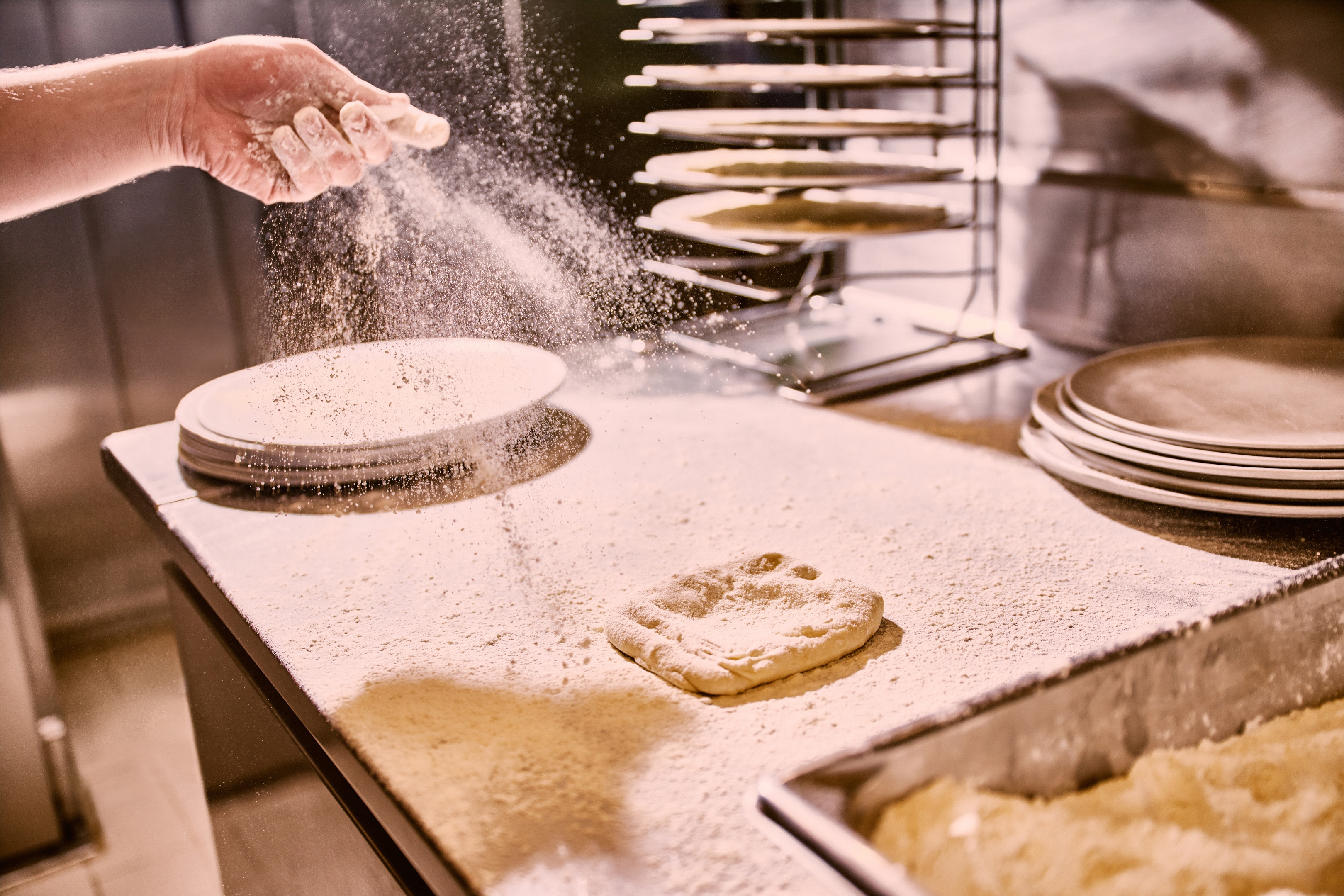 Here you have complete control over your pie — from the dough to the cheese, a little cracked pepper, a little ricotta, and any other topping you want… or you can just choose from the class menu.