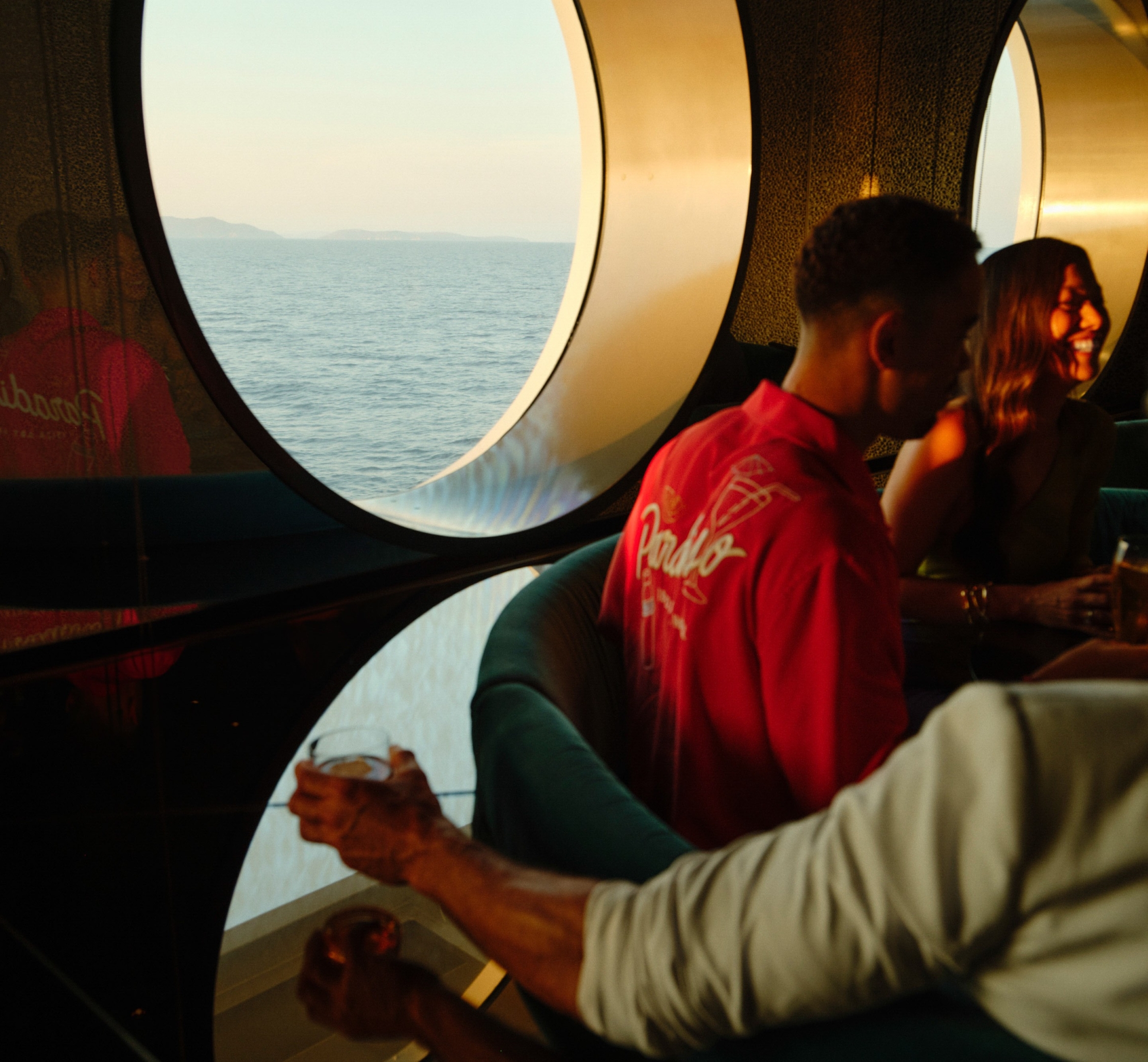Located at the top of the ship on Deck 17 – right above The Athletic Club – you’ll find our charming and serene outdoor space devoted to the pursuit of Vitamin Sea. Every morning starts with sunrise yoga, and when the day draws to a close – The Perch transforms into a space for intimate, social gatherings where you can connect with other Sailors with a sunset backdrop and a glass of champagne.