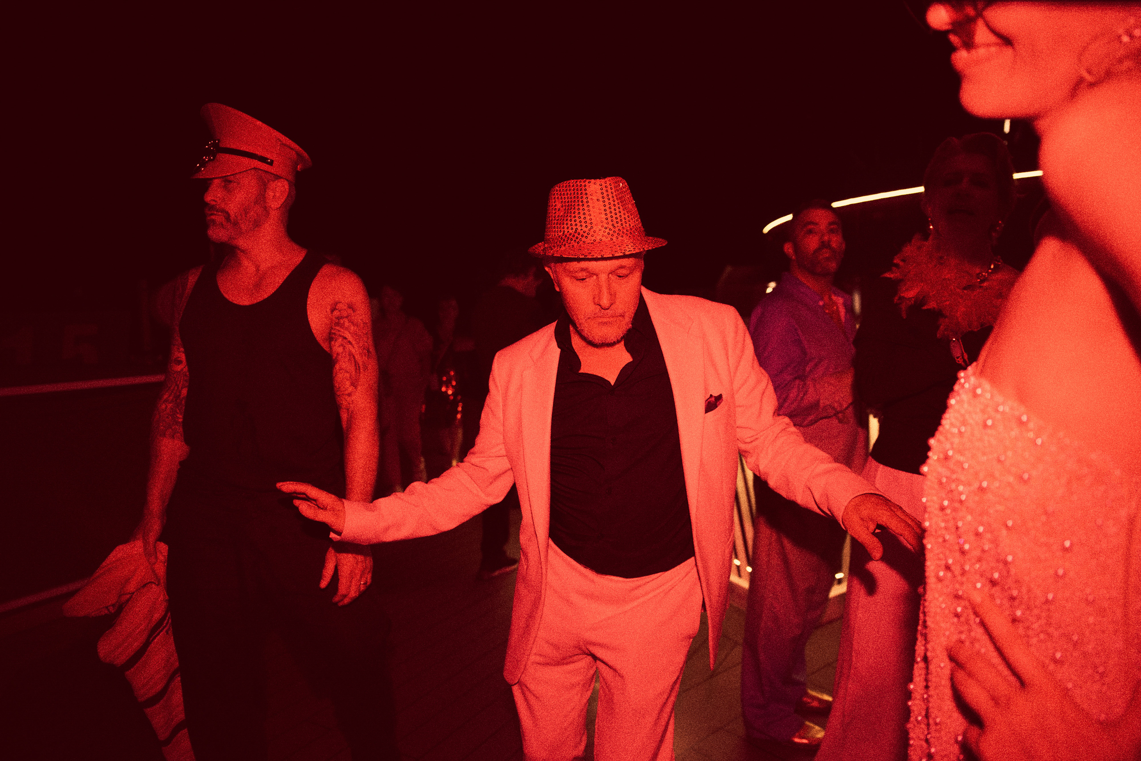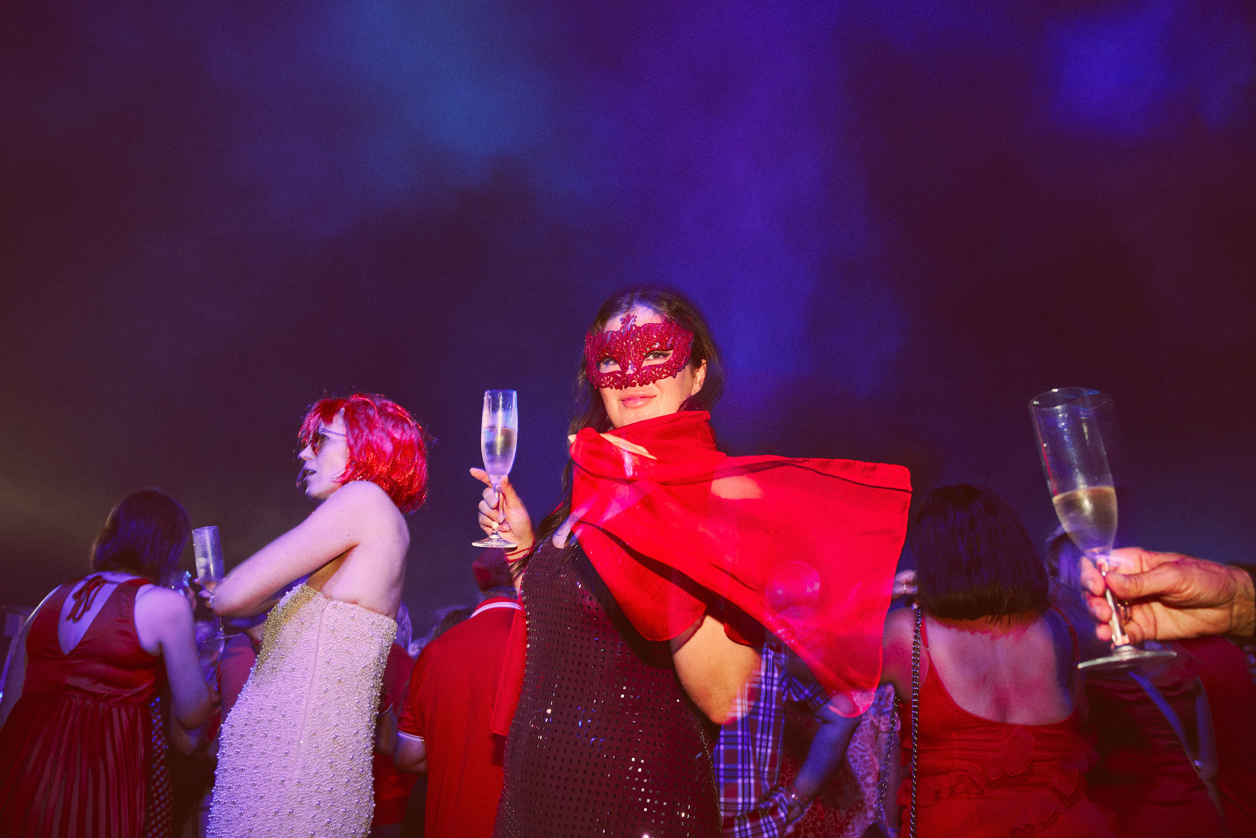An immersive celebration, through pop-up performances, and live music — culminating in a drenched-in-red pool dance party you’ve never seen before.
