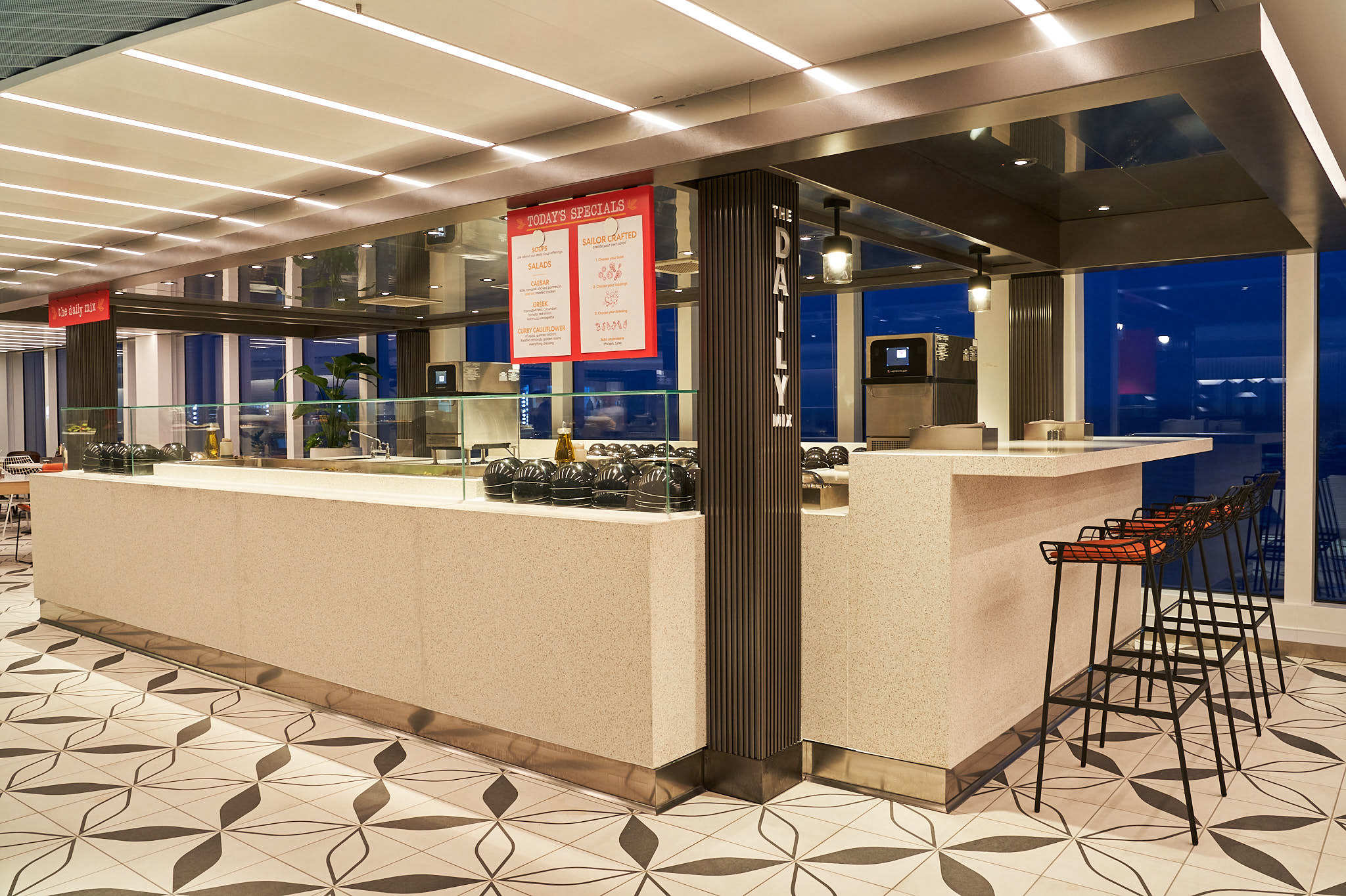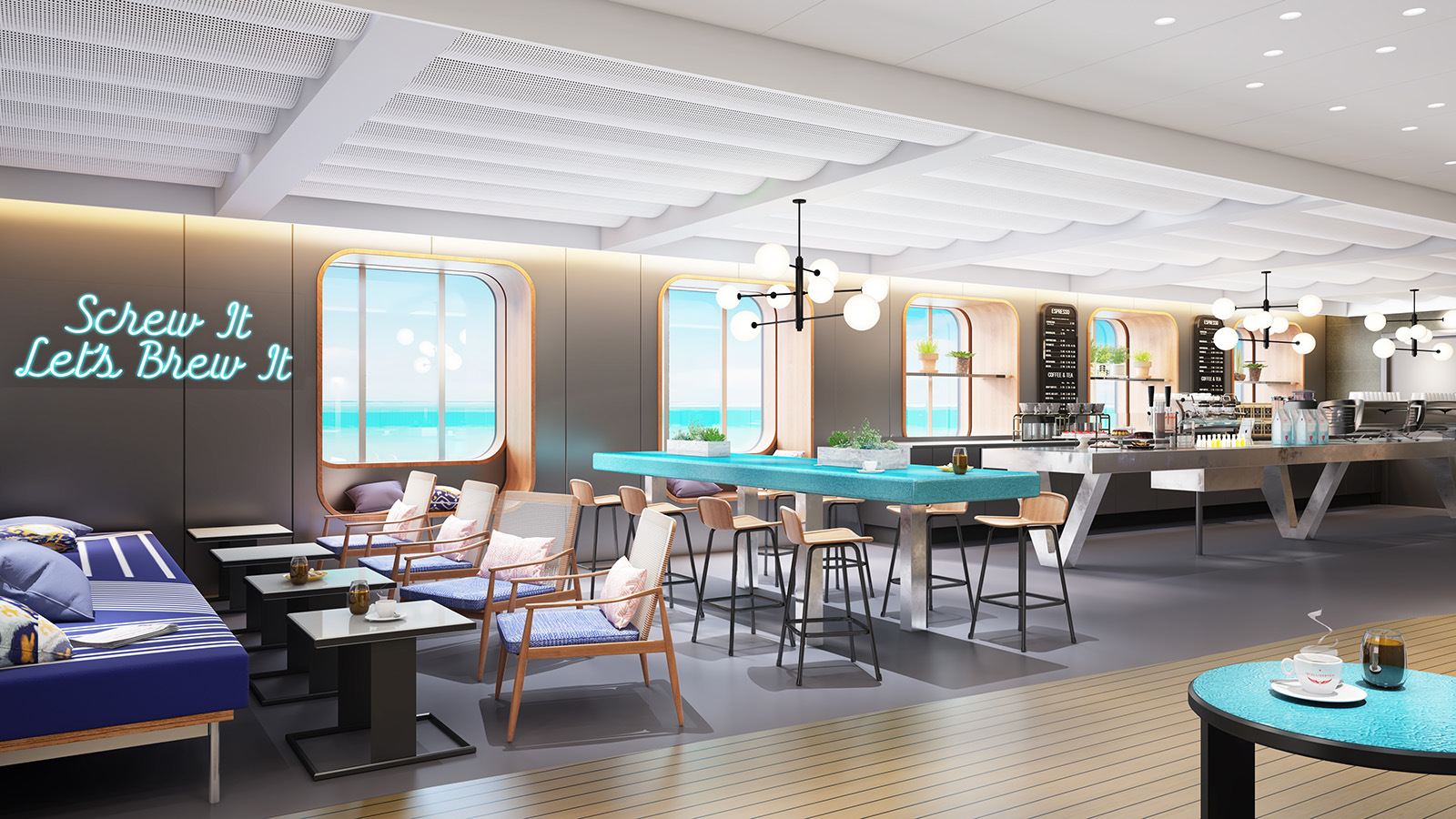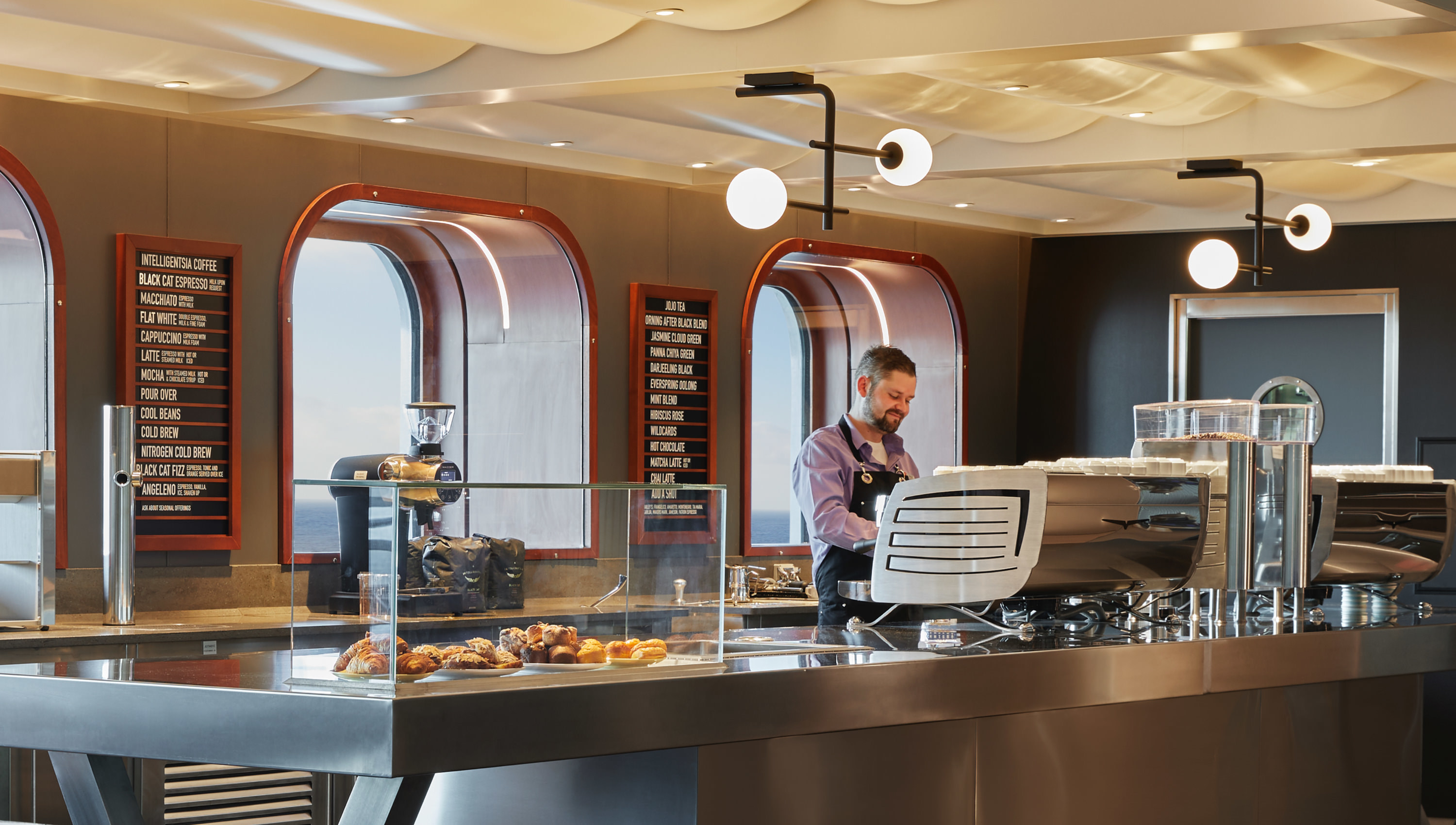 Our larger-than-life entertainment space is the first ever transformational, multi-form theater at sea. Boundary-pushing performances on the traditional Proscenium stage or late-night dance parties on the flat-floor configuration – undiscovered experiences are always unfolding here. Designed by renowned theater design consultants, Auerbach Pollock Friedlander – we’ve created a unique and flexible (while still being intimate) theater space that delivers a sea (lol) of possibilities.