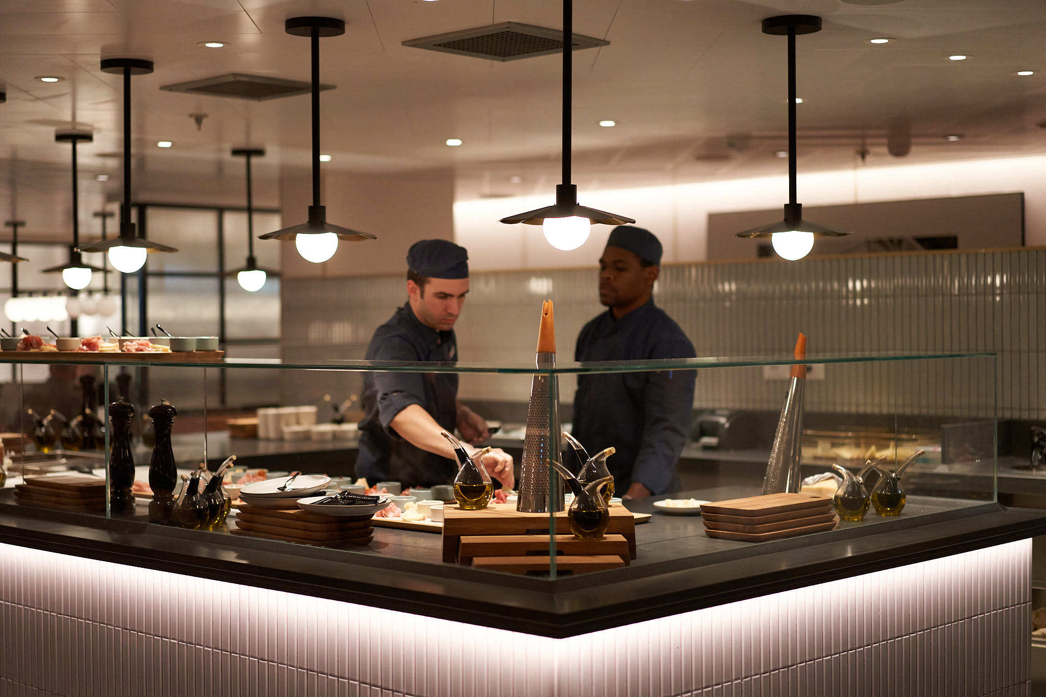 Modelled after popular food halls where you can taste a variety of options – The Galley, designed by Softroom – is your go-to for a quick bite, meal or pick-me-up throughout the day. Featuring a mix of more than eight shops and food-truck style carts, each spot will have a unique concept with signature dishes that change to suit the time of day. The Galley (takes a deep breath before reading an impressively long list) boasts a dedicated bakery and pastry shop, a panini shop, a burger grill, a taco shack, a sushi bar with bento boxes, a noodle bar, a soup and salad stand, and a 24-hour American diner. And exhale.