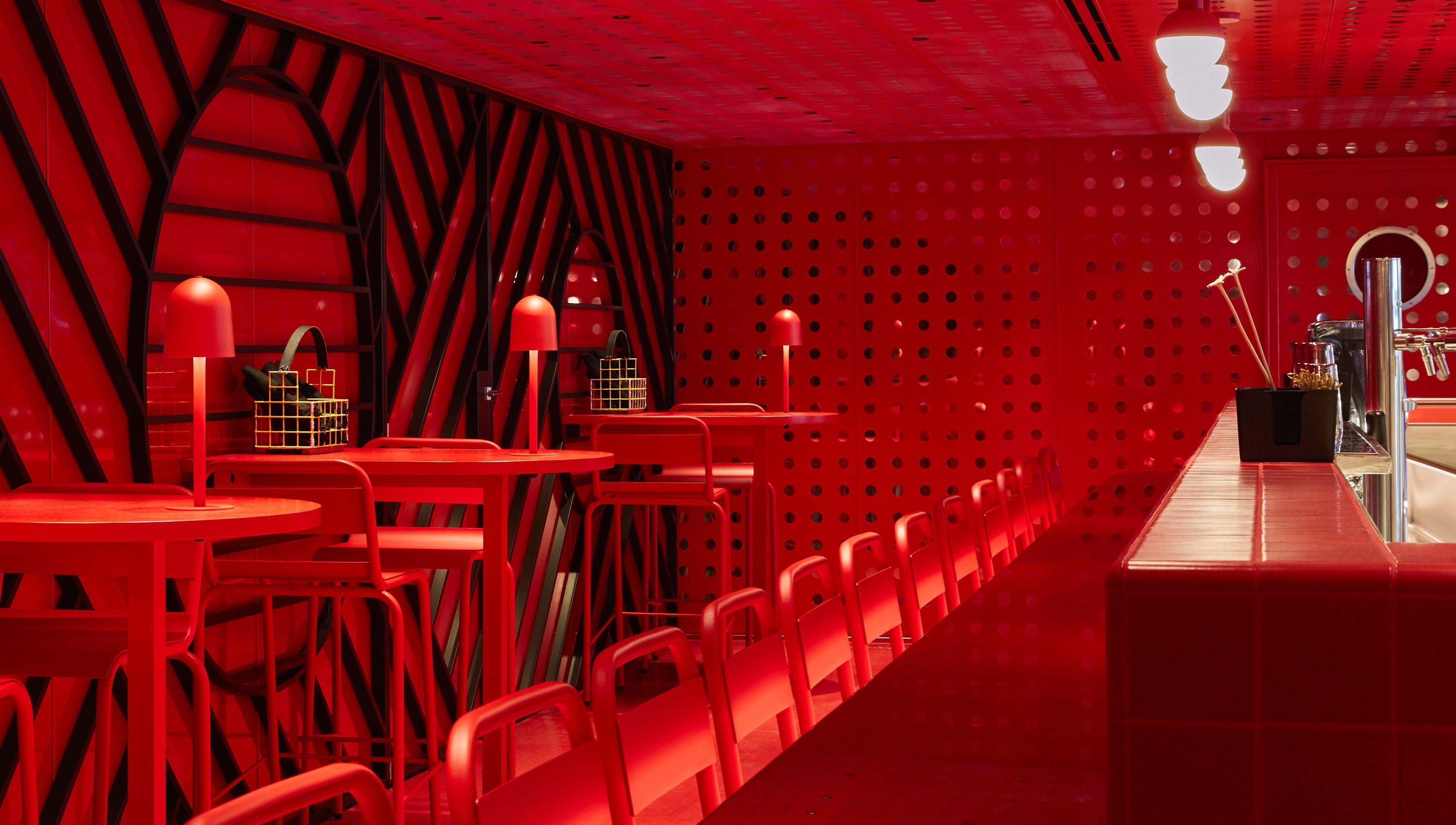 An immersive celebration, through pop-up performances, and live music — culminating in a drenched-in-red pool dance party you’ve never seen before.