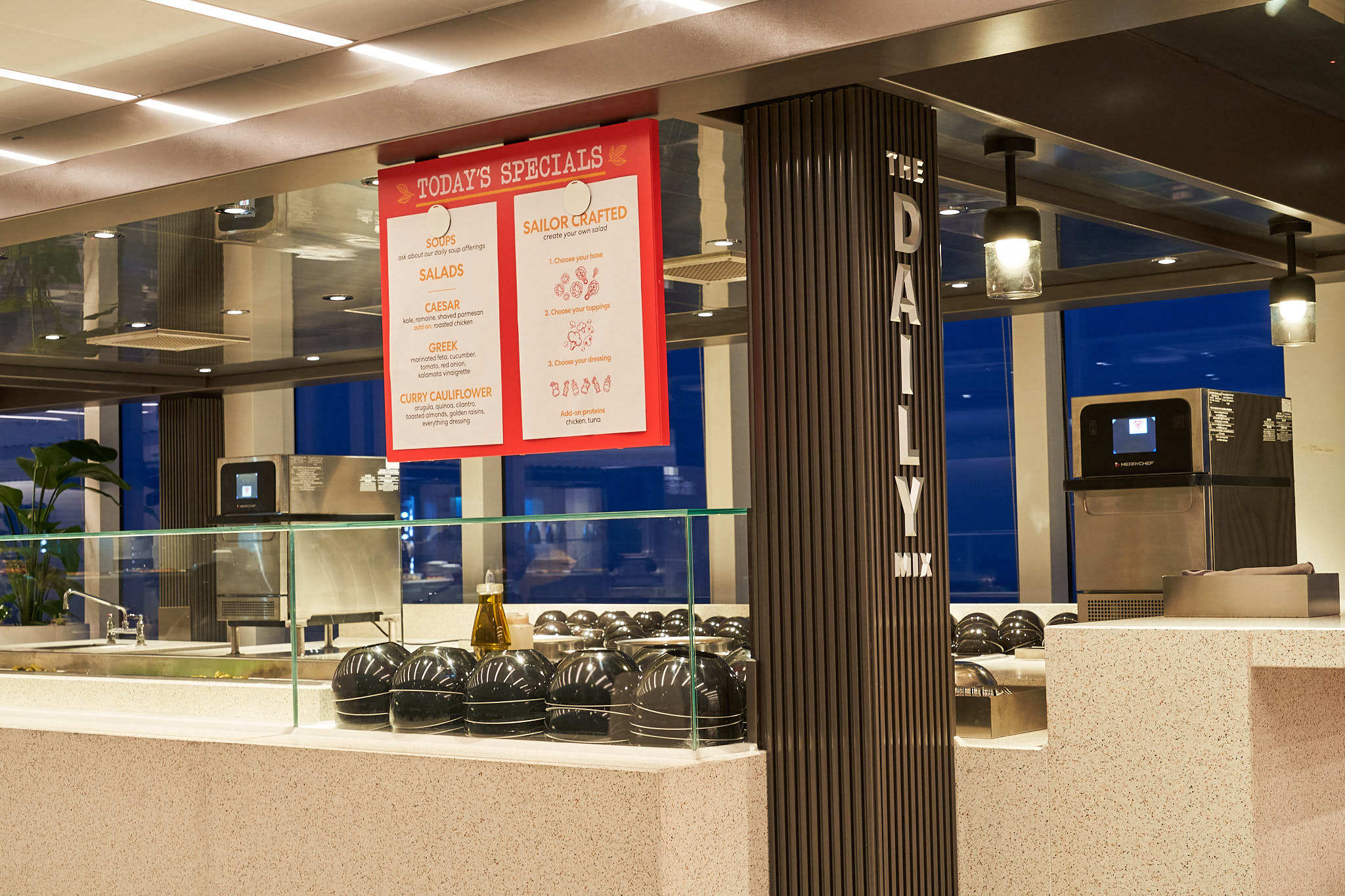 This is our 24-hours-a-day classic American diner grub located in the Galley. Craving an egg and bacon dish in the morning? BLT at lunch? Chicken and potatoes for dinner? You’re in luck, because this is the classic diner fare of your middle-American dreams.