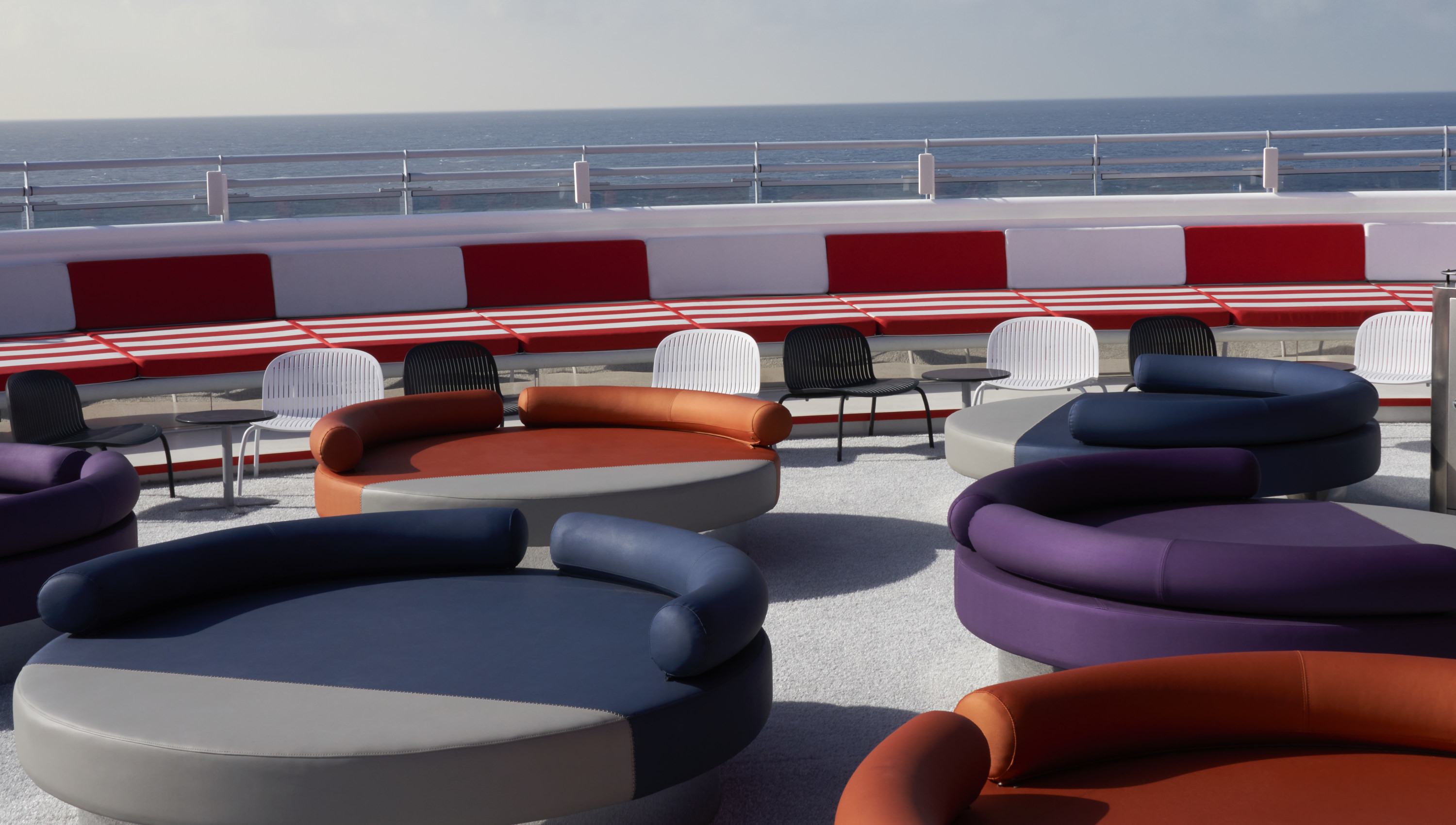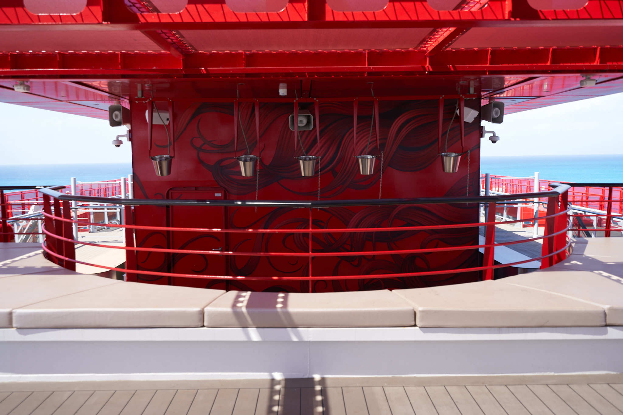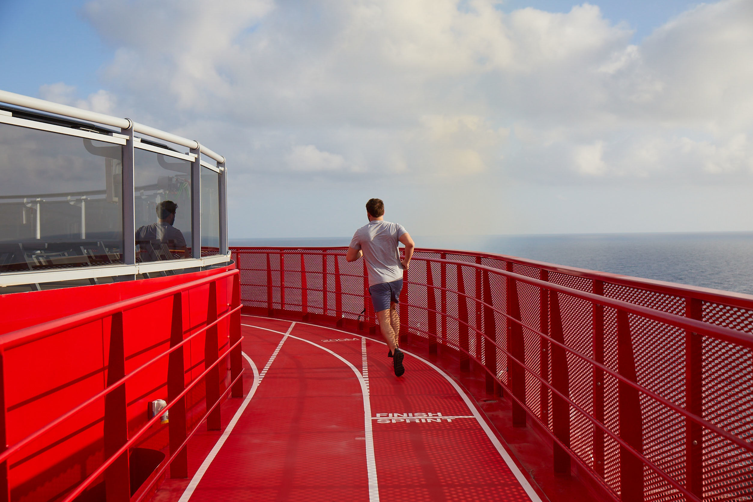 Our signature, Virgin-red running track forms a (255 meters-ish) halo-like vision over the ship, allowing you to sweat, strut or stroll. Because for some of us, the only kind of running we do is… from our problems. And don’t forget the SPF — The Runway is outside and the sun, unlike our problems, will catch up with you no matter how fast you run.