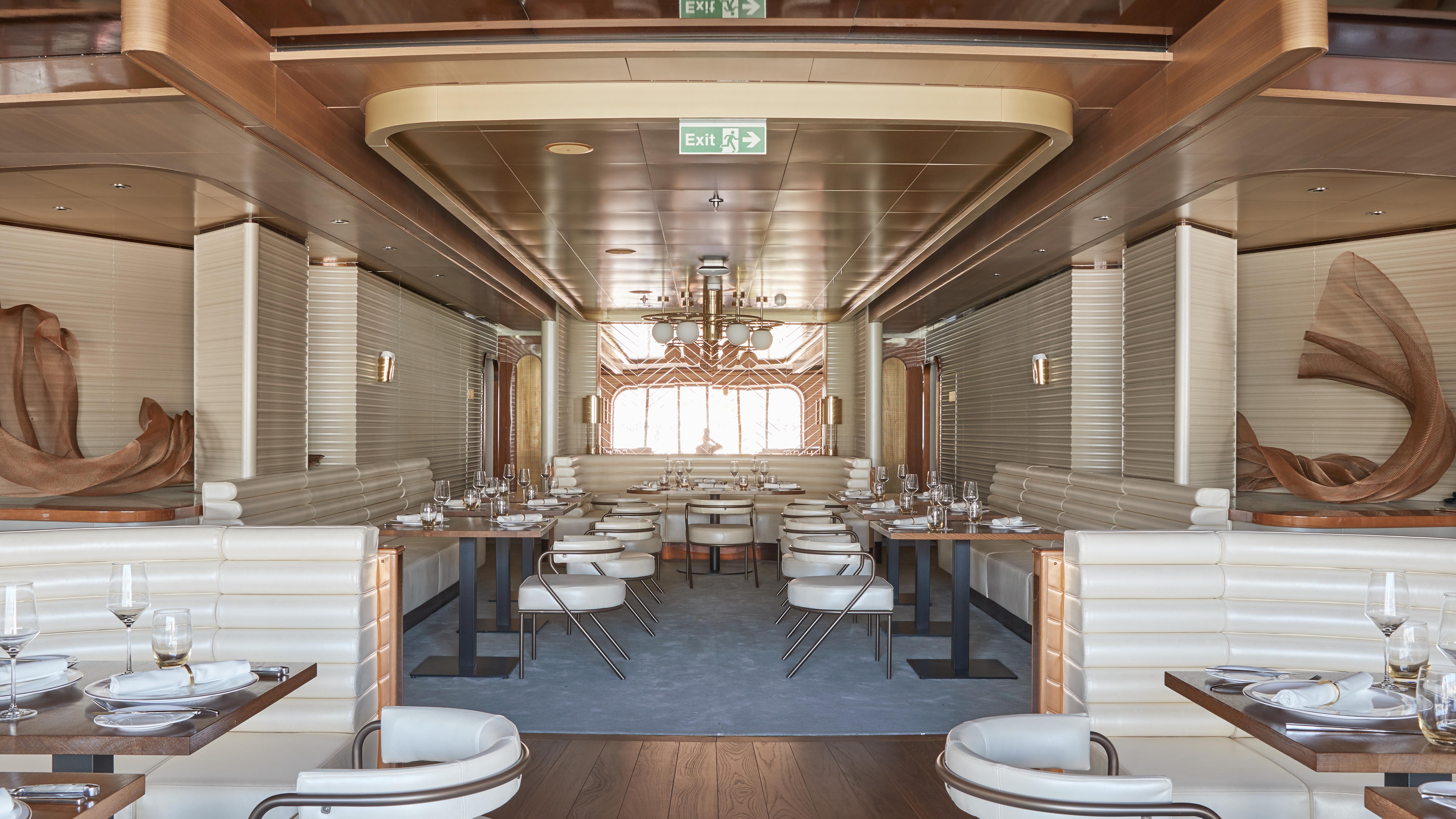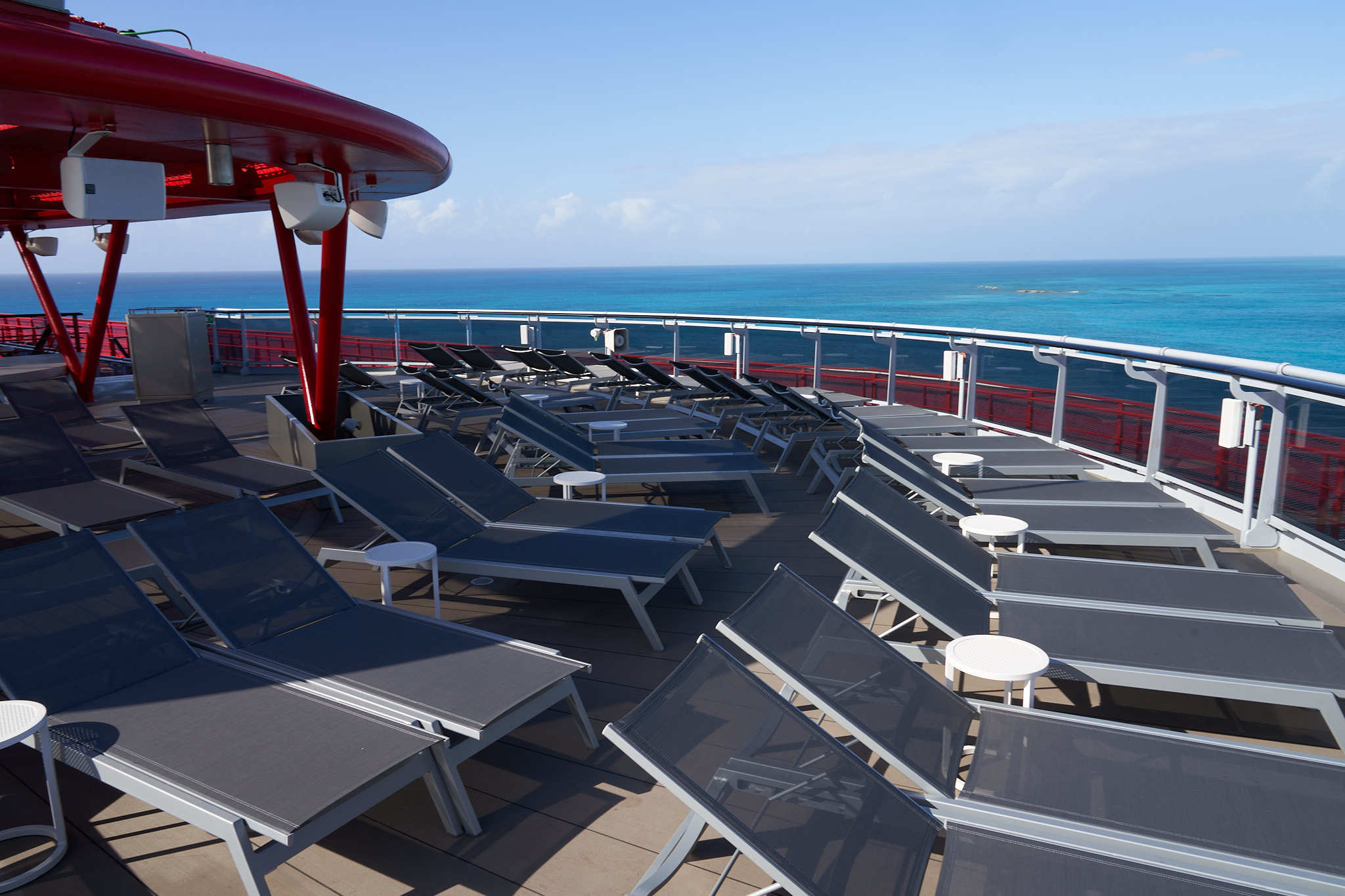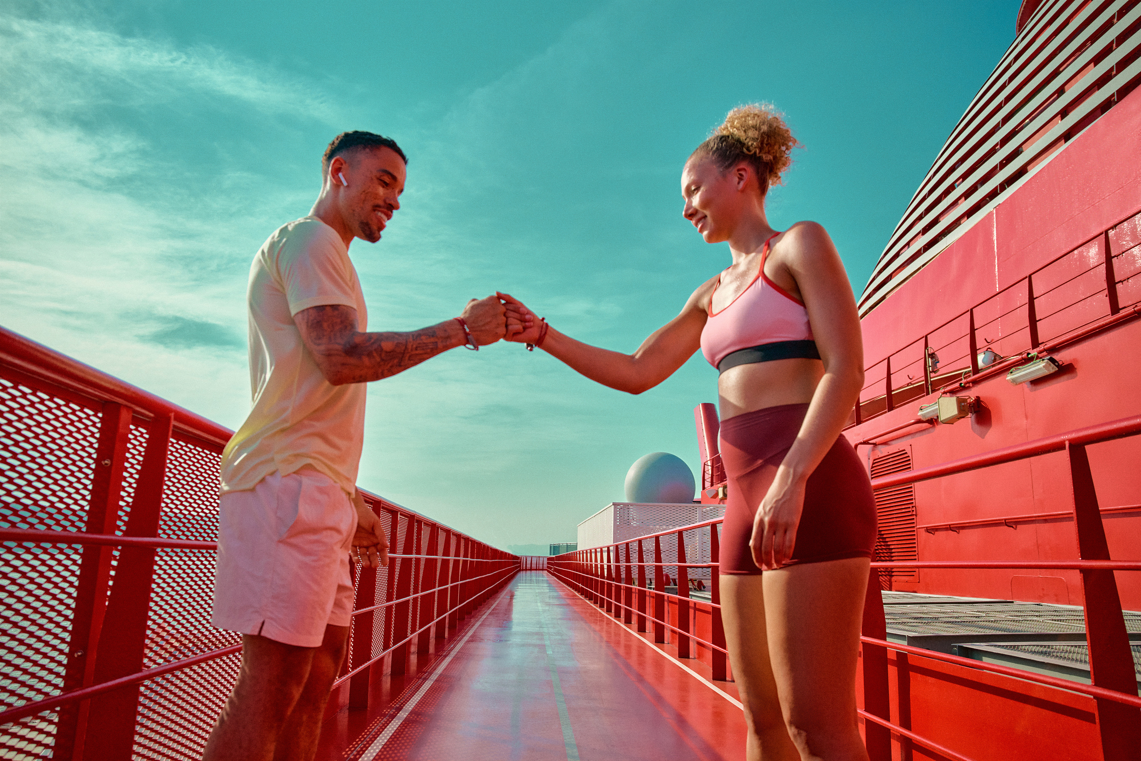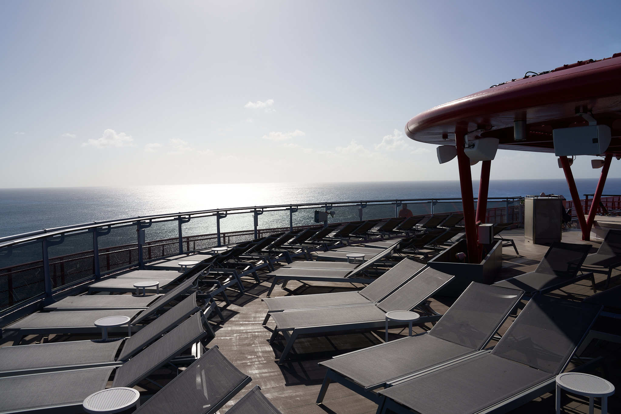 Our signature, Virgin-red running track forms a (255 meters-ish) halo-like vision over the ship, allowing you to sweat, strut or stroll. Because for some of us, the only kind of running we do is… from our problems. And don’t forget the SPF — The Runway is outside and the sun, unlike our problems, will catch up with you no matter how fast you run.
