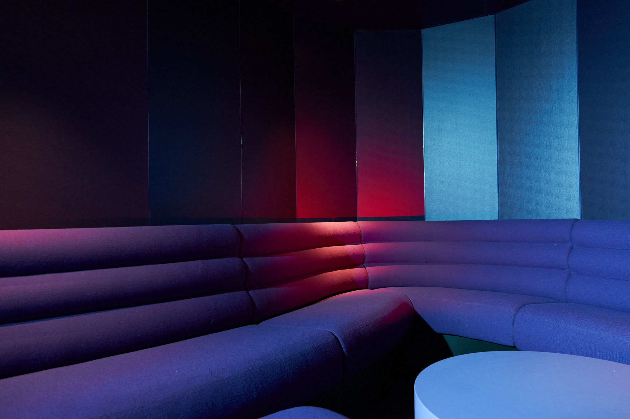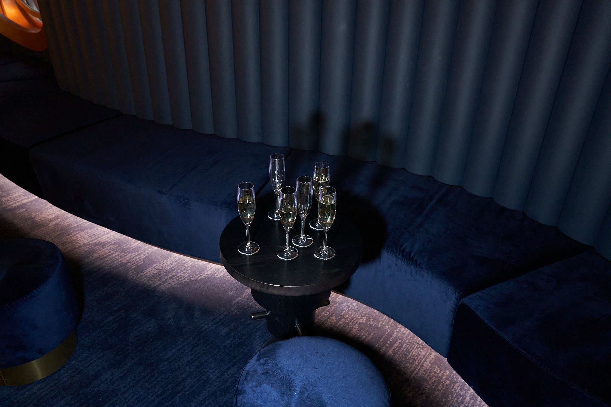Have your best lead, diva, vocalist look on point for when you plan a night with friends in this modernist take on a Japanese style karaoke room. With song choices that span decades, genres, and octave abilities, these bookable private sessions require having your go-to tracks chosen, singing voice warm and invited friends ready for a private dance and song battle to remember.