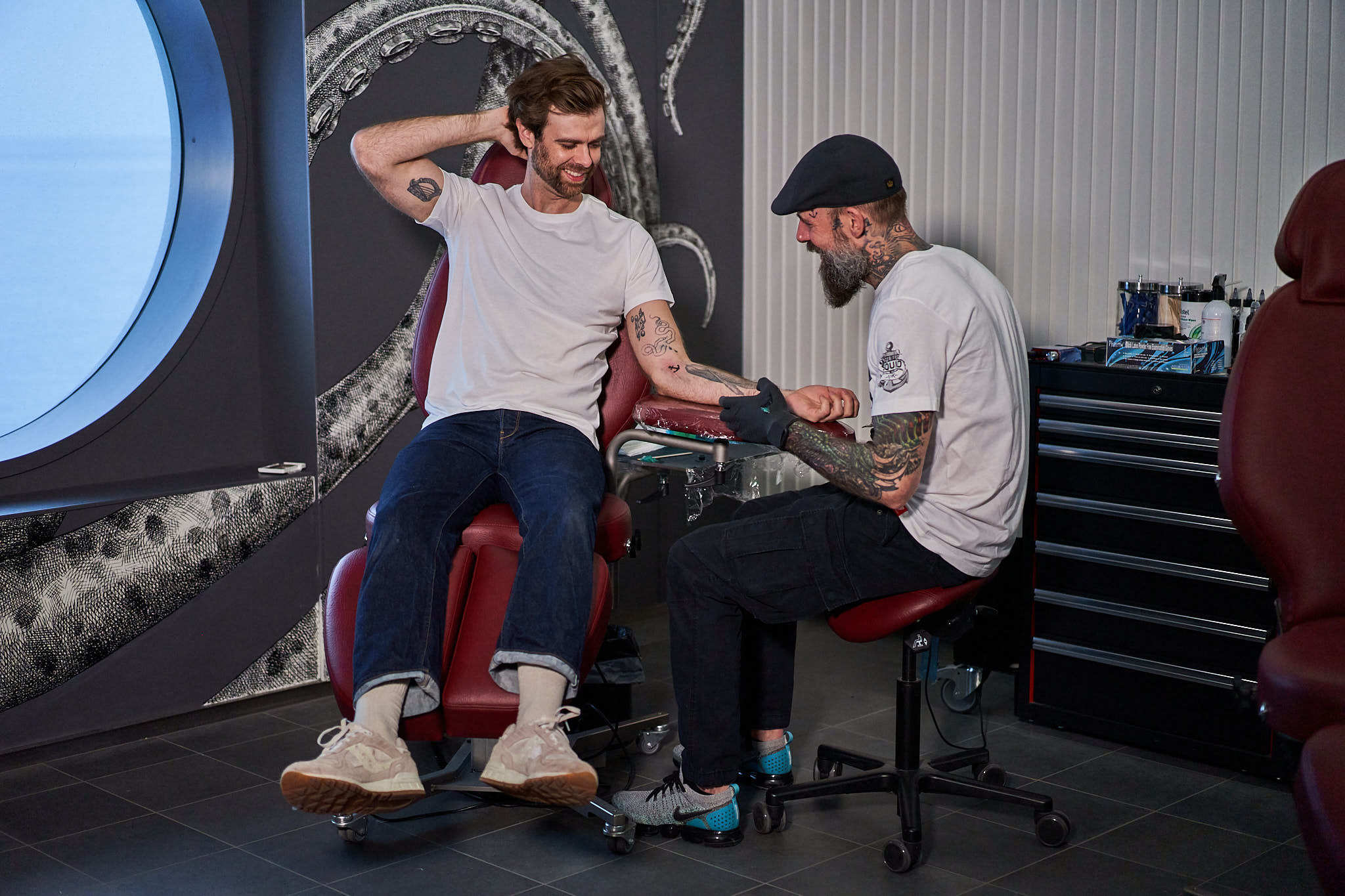 Historically traced back to sailors eternalizing their epic voyages and nautical milestones, tattoo art has always celebrated creative self-expression, tales of adventure, and unforgettable life experiences. Inspired by this maritime tradition and the power of its message, we’ve teamed up with World Famous Tattoo Ink, Soho Ink, and Freshly Inked Magazine to continue this legacy with rock ‘n’ roll style by bringing some of the best ink artists to sea, at our very own tattoo studio on board.