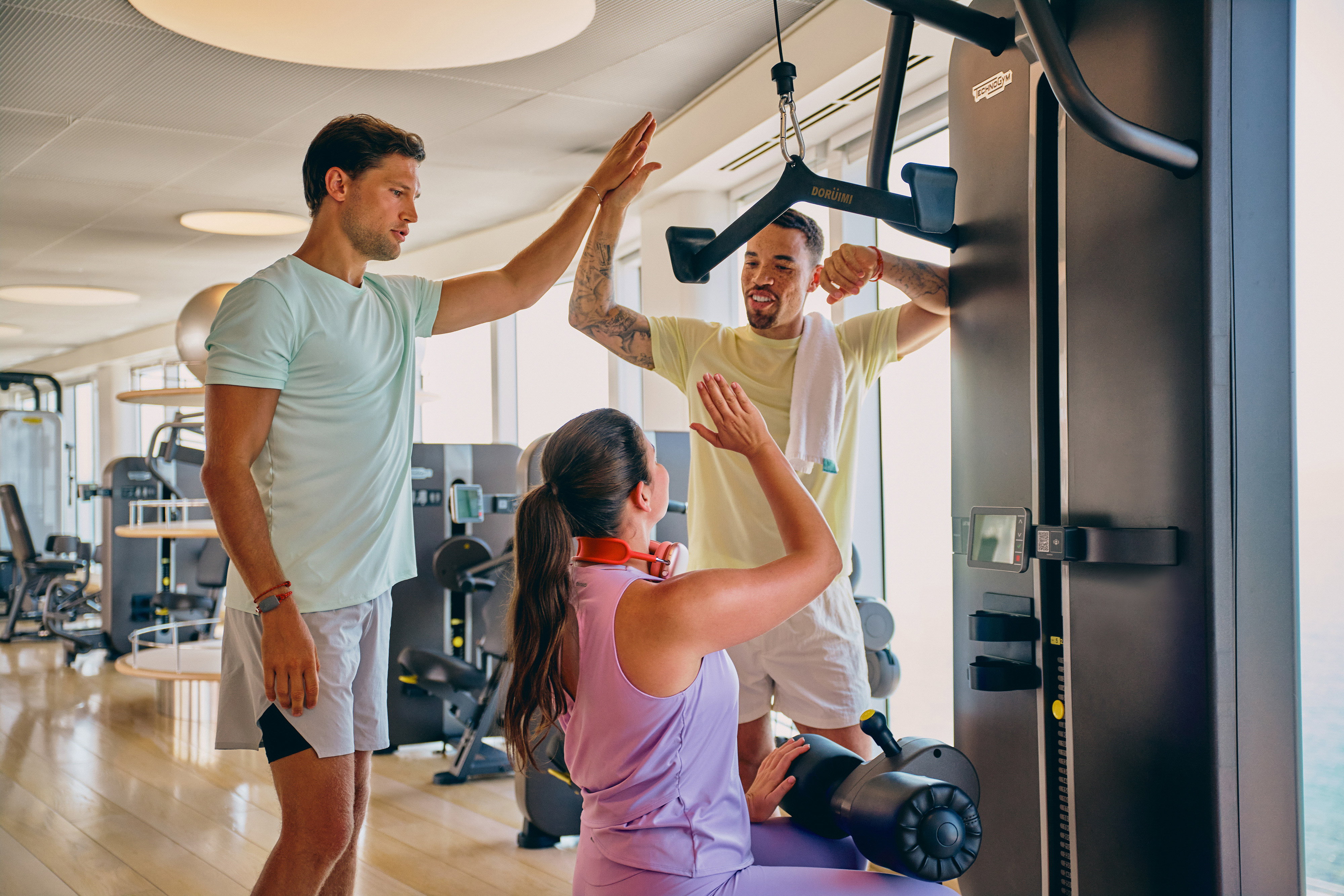Divided into two goal-oriented sections decked with state-of-the-art Technogym equipment, the B-Complex has the very best at the ready so that you can give your best when working out — from a multipurpose fitness studio offering everything from Bungee classes to BARRE, a cycling studio where going for a spin doesn’t cost a thing, bookable personal training, and dramatic views to help you keep going when you feel the burn.